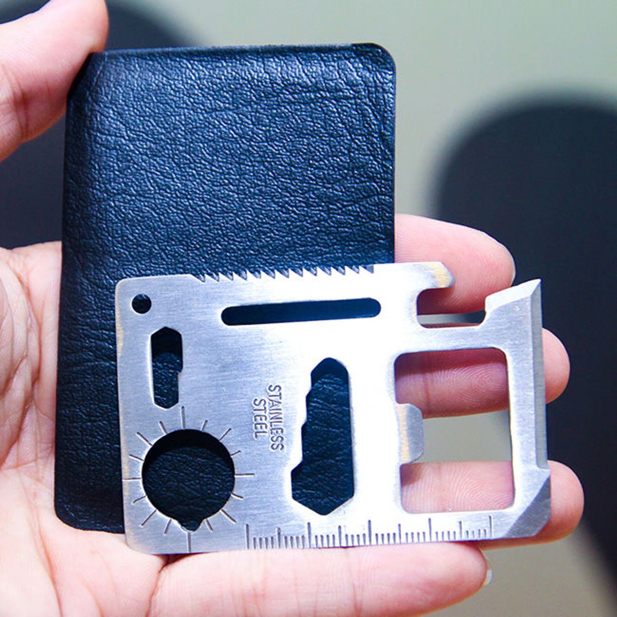 – Miếng thép đa năng với 11 công dụng khác nhau: Khui các loại đồ hộp, Dao, Vặn ốc vít, Thước kẻ, Khui nắp chai, Vặn bulon 4 cạnh, Vặn đai ốc cánh bướm, Lưỡi cưa, Vặn Anxillary, Vặn bulon 2 cạnh, Móc chìa khóa rất tiện lợi, hiệu quả.
