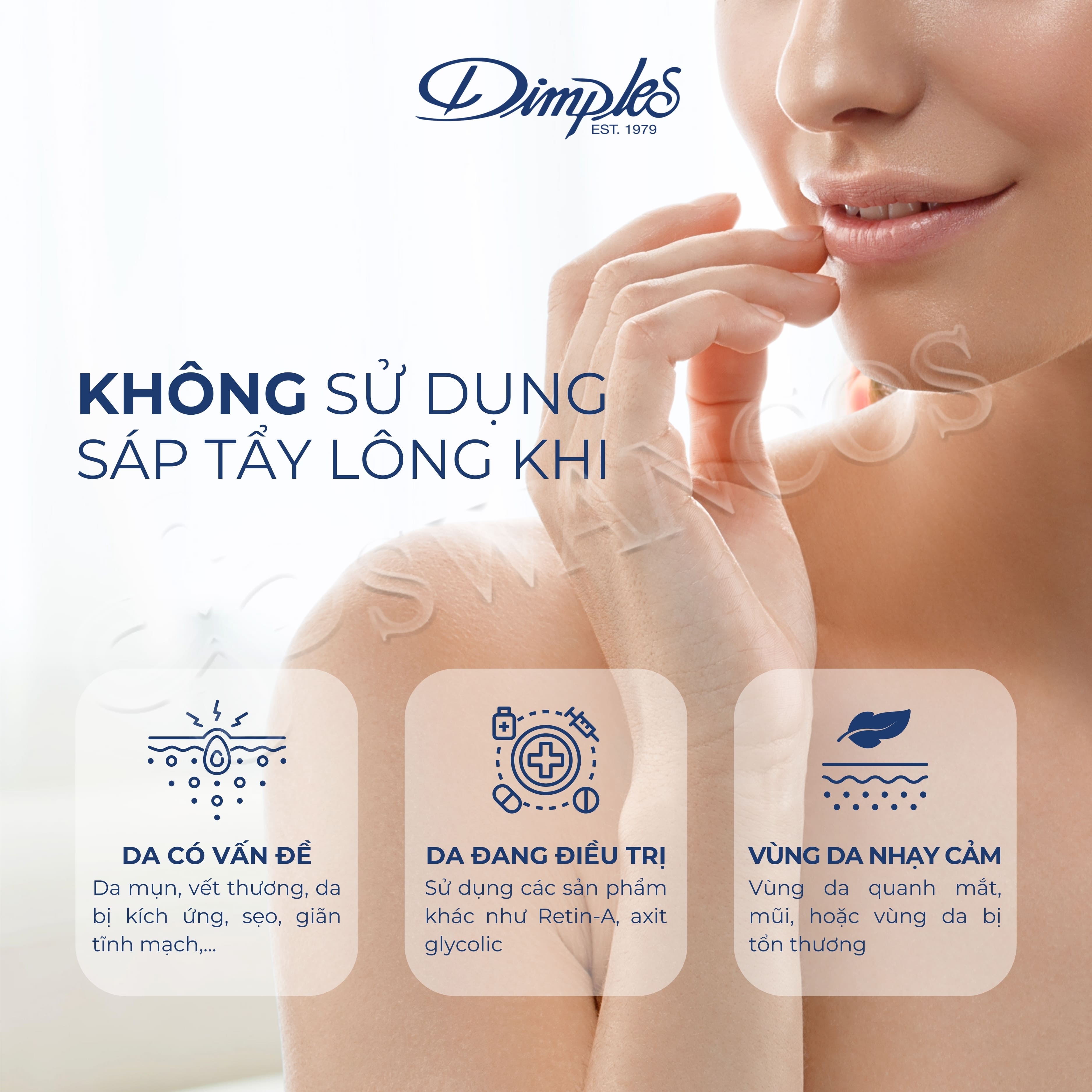 Miếng wax tẩy lông mặt Dimples dành cho da nhạy cảm là giải pháp hoàn hảo để loại bỏ lông mặt nhẹ nhàng, an toàn và hiệu quả dài lâu. Thiết kế chuyên biệt giúp bạn dễ dàng chăm sóc sắc đẹp tại nhà, không cần đến spa.