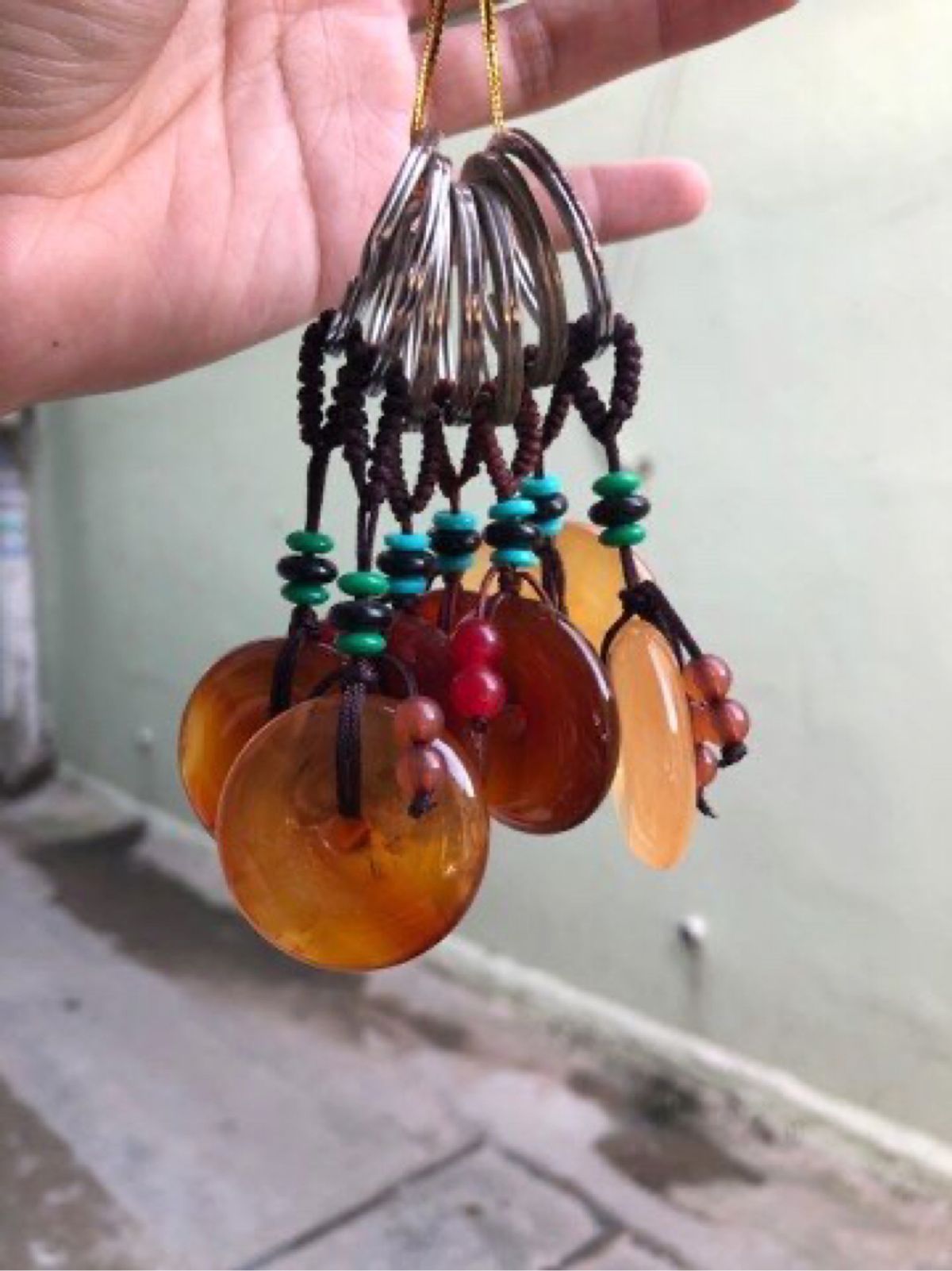 Móc khoá đồng tiền treo oto đá mã não giá sỉ/bán buôn