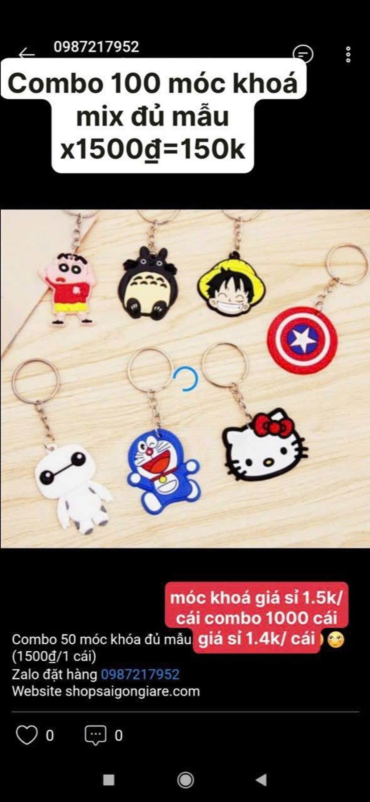 Móc khóa xinh nhiều mẫu giá 1500d giá sỉ - giá bán buôn