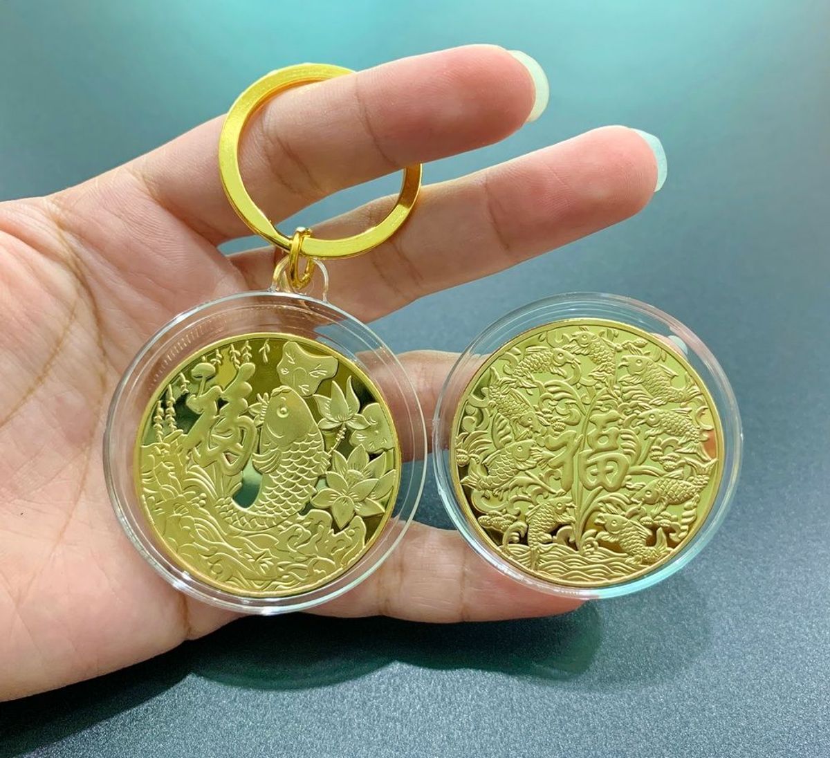 MÓC KHÓA Xu Cá Chép Tài Lộc Mạ Vàng Phong Thuỷ May Mắn giá sỉ - giá bán buôn