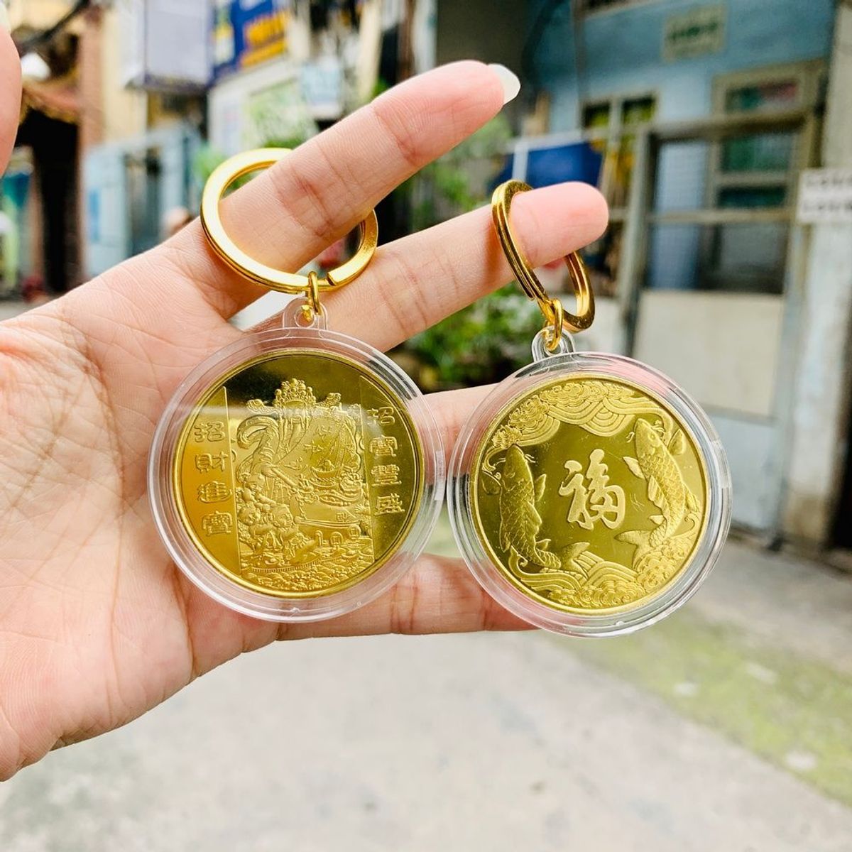 Móc khóa Xu thần tài mạ vàng 24k quà tặng ý nghĩa.
