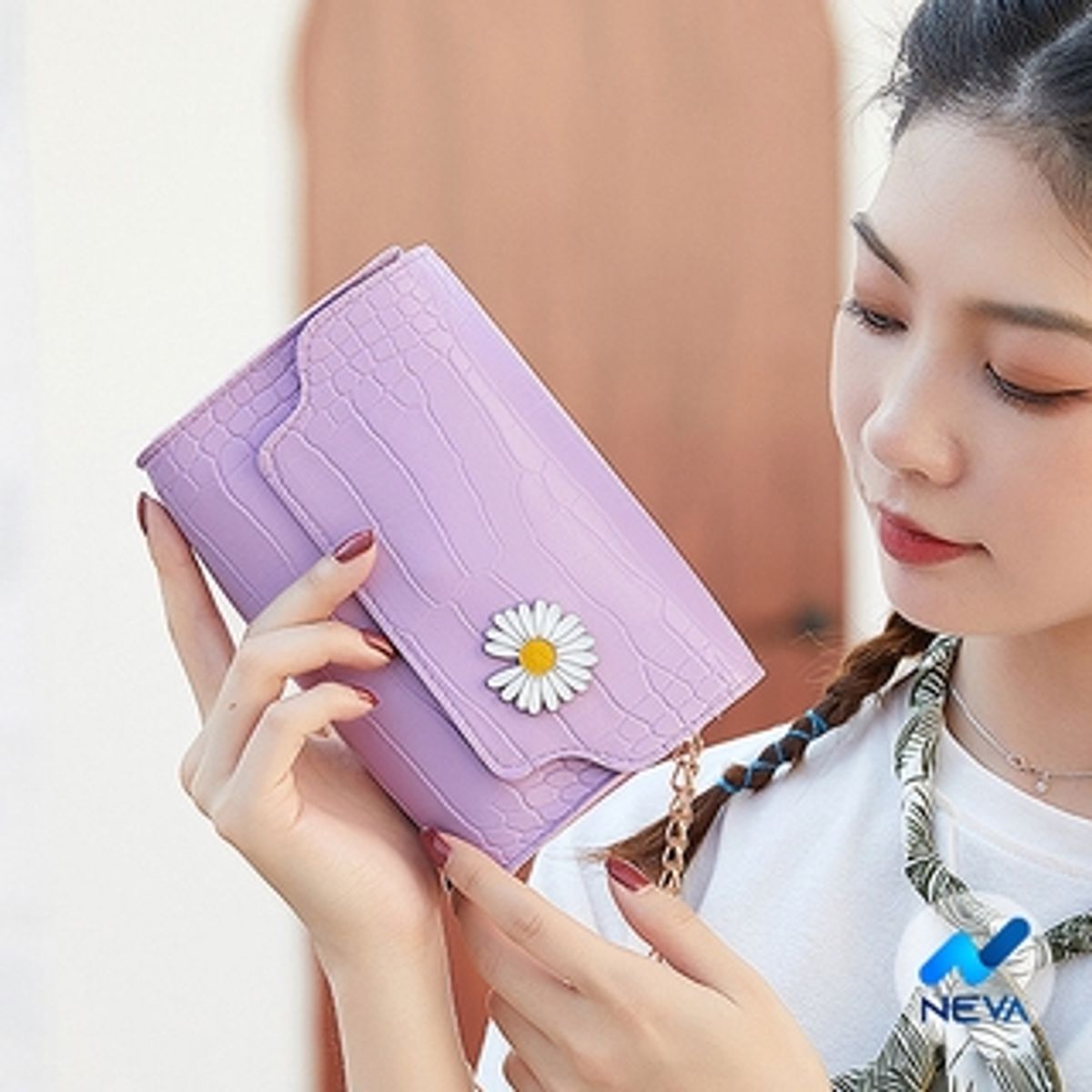 (Mới) Túi đeo chéo họa tiết hoa cúc dập vân phối dây thanh mảnh NEVA873