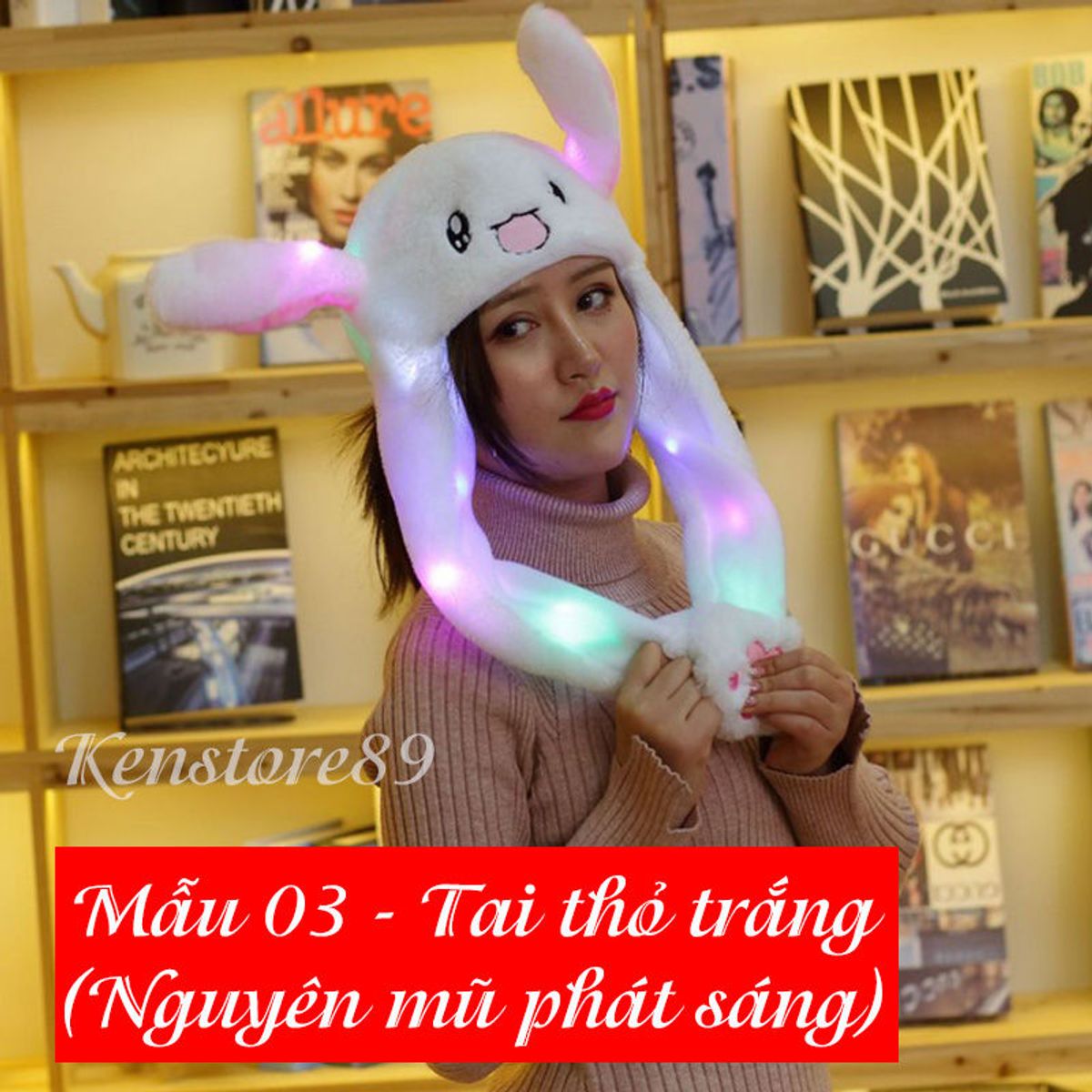 Mũ nón Tai thỏ Tiktok tai giật giật - Có đèn