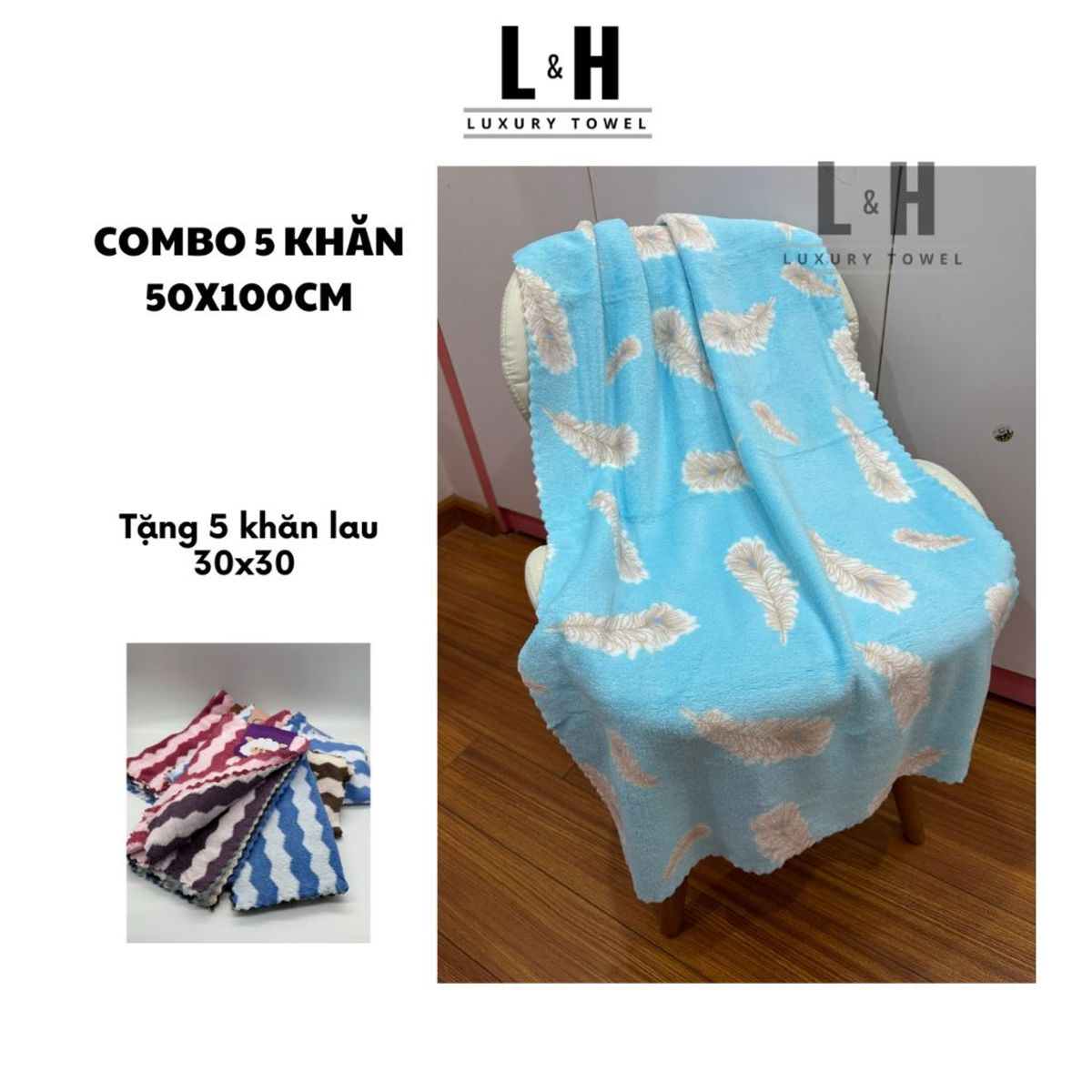 Mua 5 tặng 5 (Combo 5 khăn tắm hạt gạo bông mềm, kích thước khăn 50x100cm tặng 5 khăn tay lau lông cừu 30x30cm) Giao Màu - Chất khăn: 100% lông cừu - Khăn mềm mại; Tẩy nhuộm không hóa chất độc hại; Thấm hút gấp hai lần khăn thông thường. Cam kết khăn khăn chính hãng L&H: - Được phép hoàn trả lại hàng trong vòng 7 ngày nếu khách hàng không hài lòng. - Giao hàng nhanh chóng - Hệ thống nhân viên tư vấn khách hàng 24/7. Gợi ý cách sử dụng và bảo quản khăn: - Khi mới mua về, khách hàng lưu ý giặt qua nước đầu trước khi sử dụng. - Khăn phải được phơi hoặc sấy khô trước khi cất đi. - Để khăn ở nơi thoáng khí, khô ráo tránh cho khăn ẩm mốc hoặc vi khuẩn phát triển. - Không sử dụng chất tẩy rửa mạnh để tẩy khăn. - Phơi hoặc sấy khăn ở nhiệt độ vừa đủ tránh cho khăn bị xơ và cứng. #Khantam #khanxuatkhau #khanbong #khanchauau #khanchatluongcao #khanbo #khanset #khankhachsan #khannhanghi #khanchobe #khangiadinh #khanmat #khanlaudau #thamhut #memmai #hutnuoc #maukho #soibong #caocap #bongmem #60x120 #70x140 #30x50 #35x75 #40x80 #combo #boset #set #bo #6khan