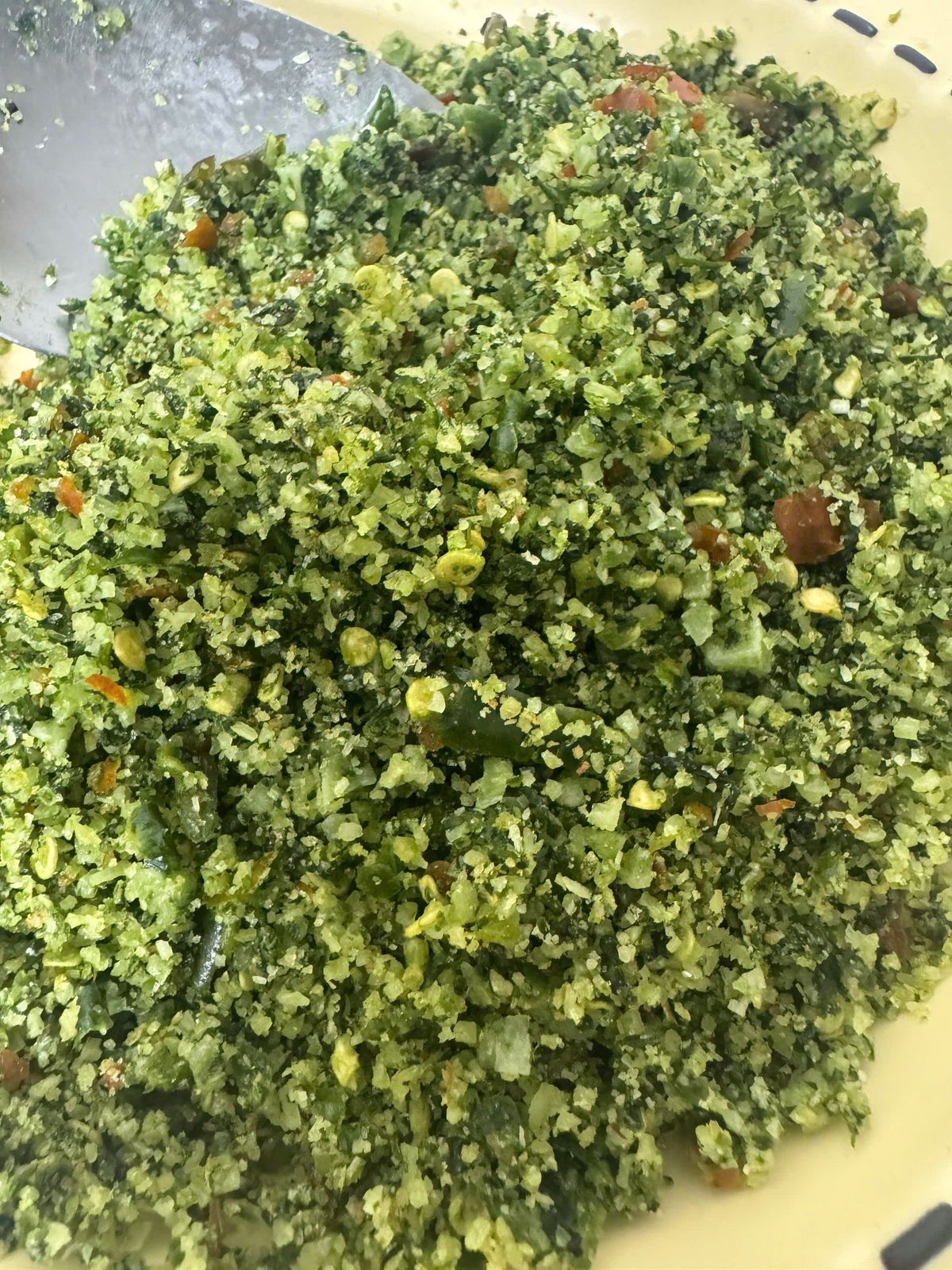 Người ăn chay và mặn đều dùng được. Chấm với trái cây, thịt gà, thịt heo hoặc làm cơm chiên lá é đều rất ngon.