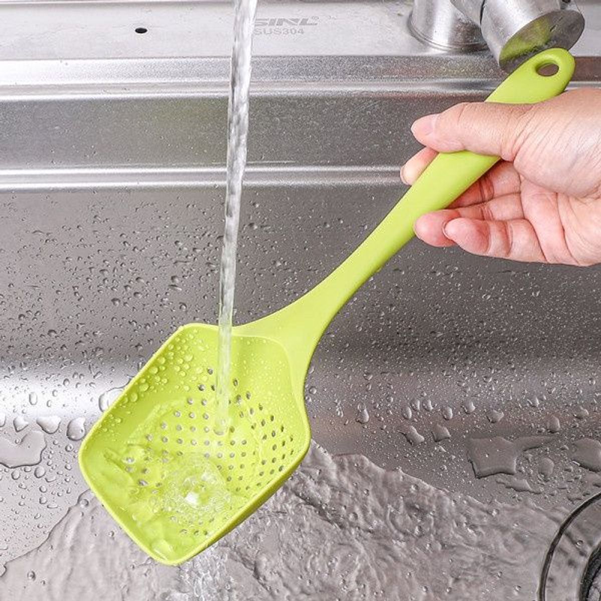 - Chất liệu: nhựa cao cấp, có tráng phủ lớp Ion bạc kháng khuẩn Ag+, an toàn cho người sử dụng. Khả năng chịu nhiệt từ -20℃ ~ 200℃ - Kích thước: dài 29,3cm, độ sâu lòng muôi: 4,5cm - Công dụng: dùng để trần/ vớt rau luộc, đồ chiên rán hay rau xào ko bị nhiều nước hoặc trần bún phở...vv đầu muôi mềm dẻo không làm trầy xước các bề mặt của xoong chảo - Hàng nhập khẩu từ Nhật, sản xuất tại Nhật