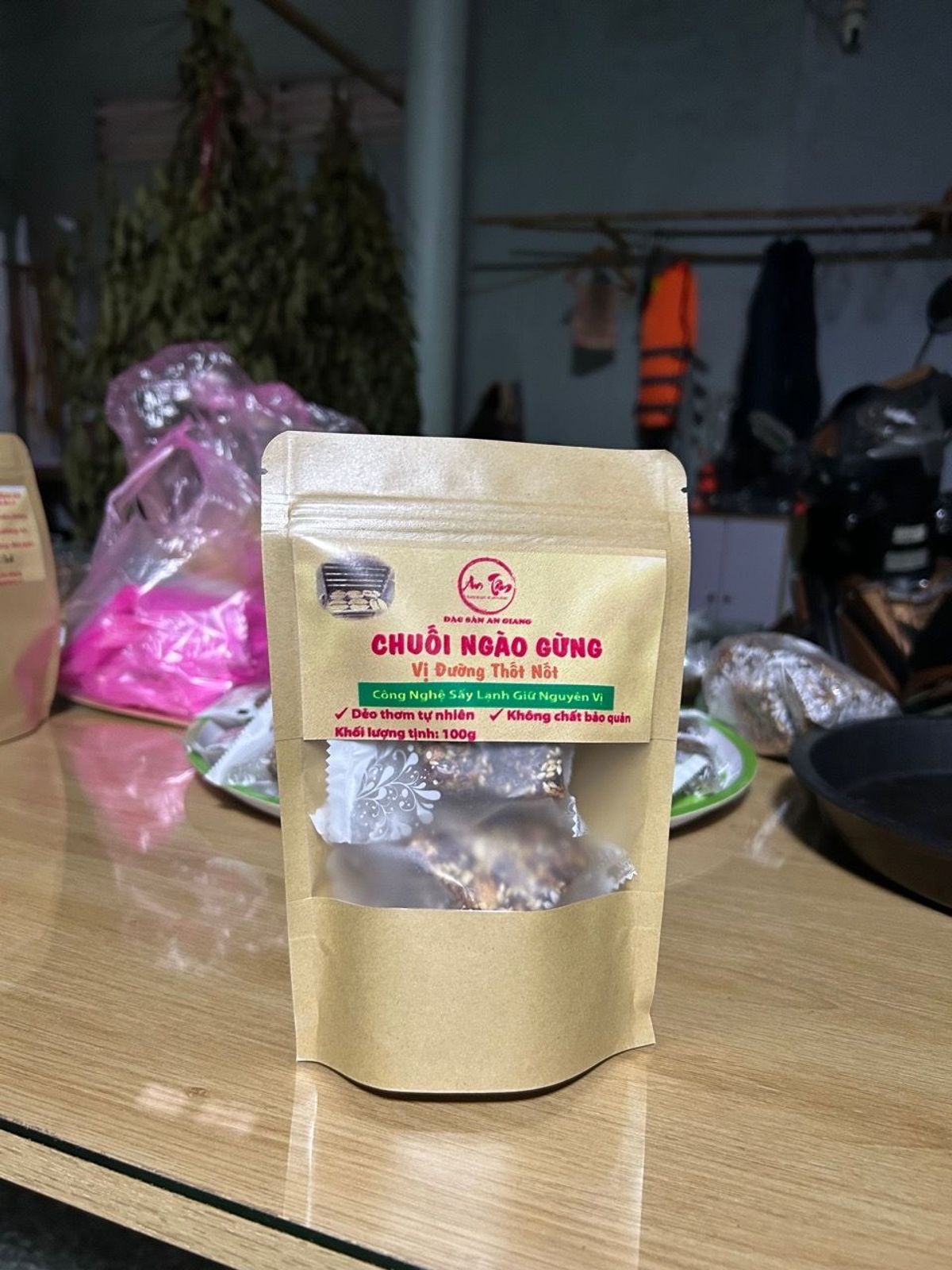 Điểm khác biệt: Sản phẩm KHÔNG dùng đường cát, mà được sên hoàn toàn bằng ĐƯỜNG THỐT NỐT nguyên chất An Giang, kết hợp với cốt chuối sấy dẻo (thay vì chuối tươi thông thường) tạo nên độ dẻo dai và hương vị đặc biệt.