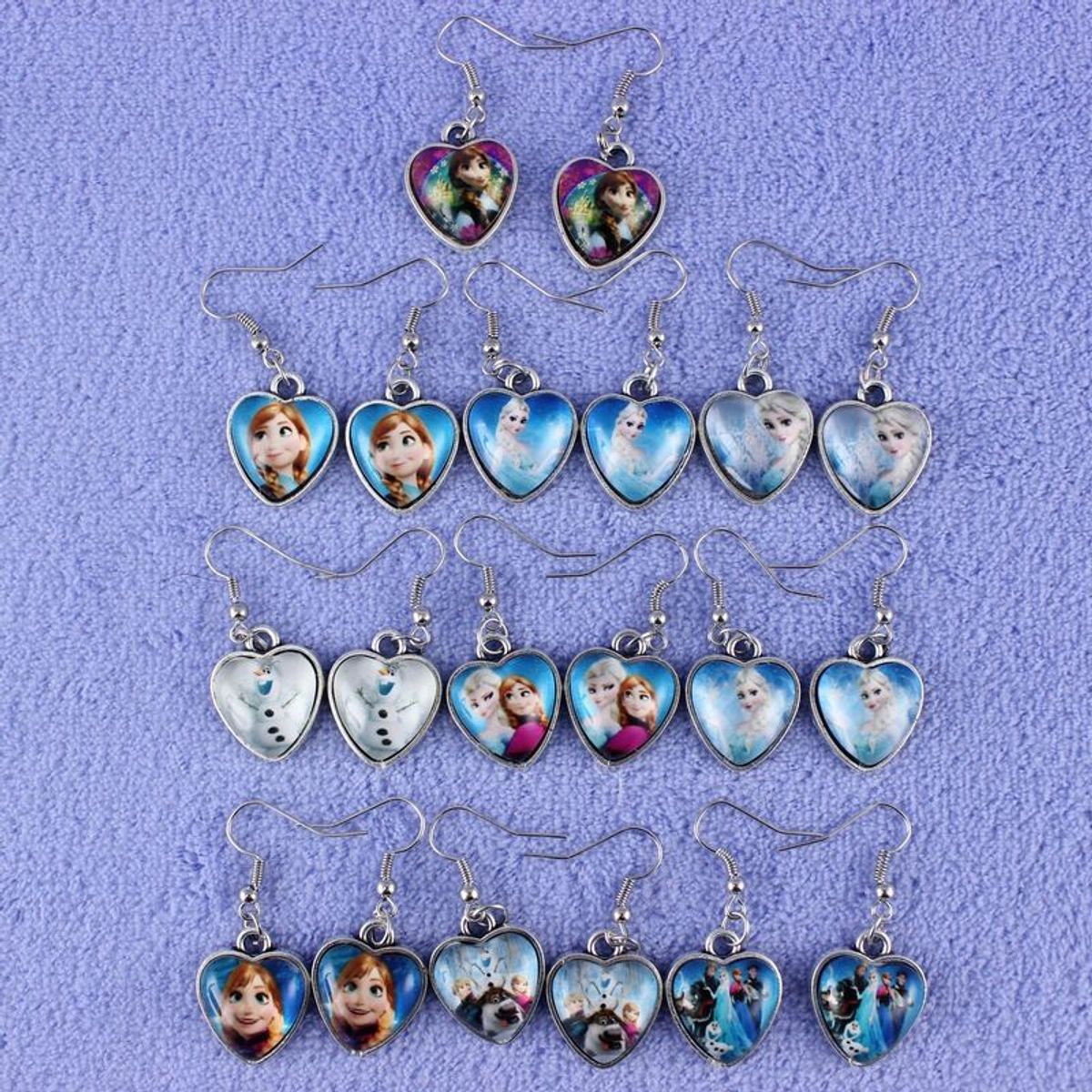 N74 khuyên tai bé gái hình trái tim họa tiết công chúa frozen mẫu âu mỹ giá sỉ/bán buôn