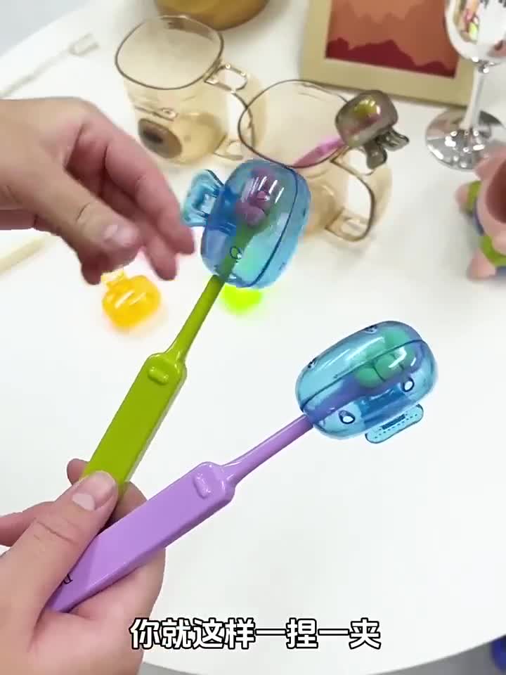- Khi cần dùng, chỉ cần bóp nhẹ để mở nắp và lấy bàn chải ra