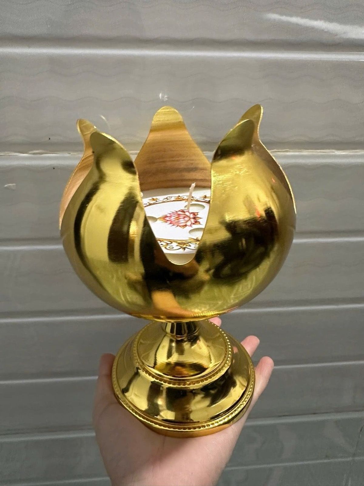 Nến Thơm hoa Sen Vàng – Ánh kim phú quý, hương thơm an nhiênThiết kế hình hoa sen vàng ánh kim – biểu tượng của thanh cao, tài lộc và bình an.Khi thắp lên, mới các hương thơm lan tỏa đầy tinh tế: - Hương trầm: trầm lắng, an yên, hợp không gian thờ và thiền. - Hương gỗ thánh : ấm áp, sang trọng, tạo cảm giác vững chãi. -Hương Hoa mẫu đơn: ngọt ngào, quý phái, biểu trưng phú quý. - Hương Hoa ly ly: thanh khiết, nhẹ nhàng, thư giãn tâm trí. Một ngọn nến – đủ đầy hương, sắc và khí chất.