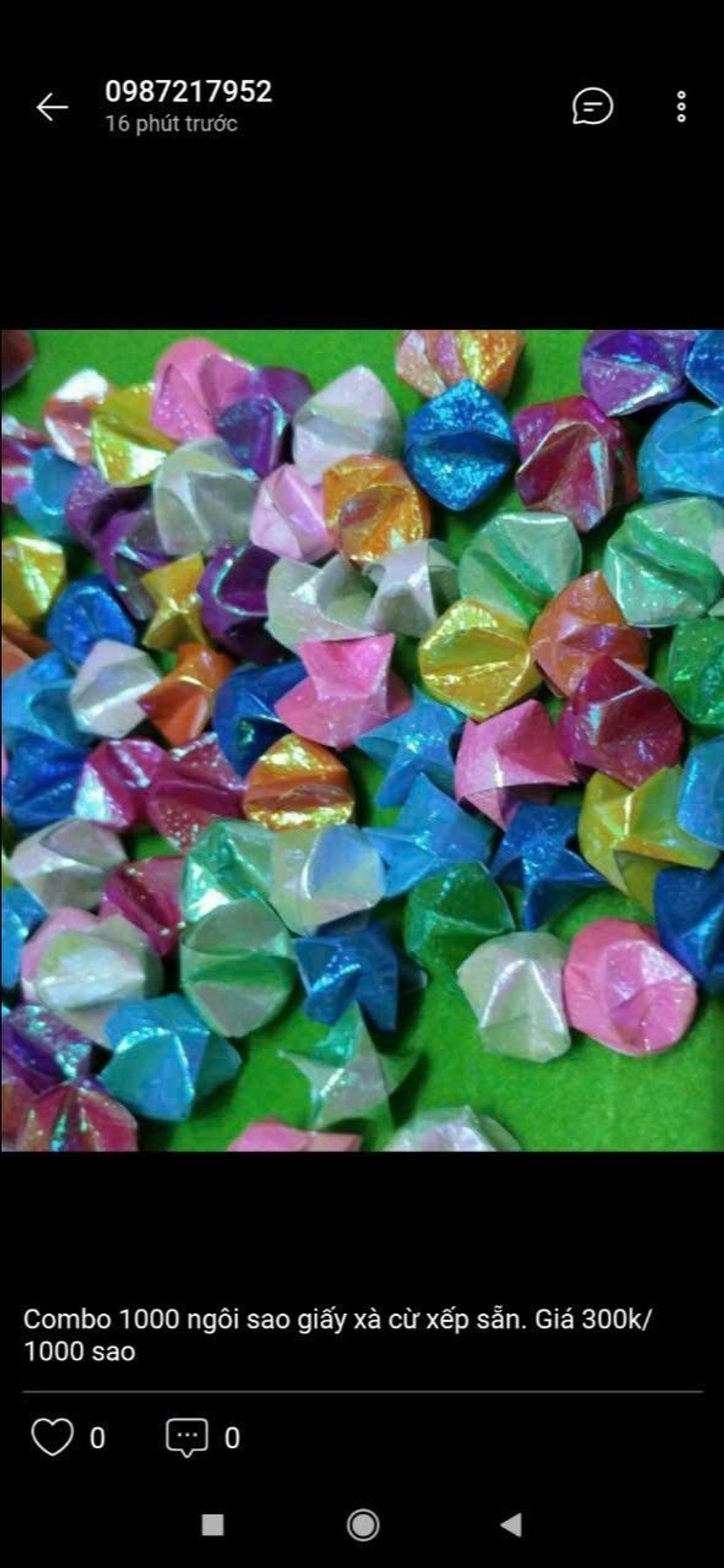 bán ngôi sao giấy xếp sẵn có nhiều màu nhiều mẫu nhé các bạn giá 300k/1000 ngôi sao