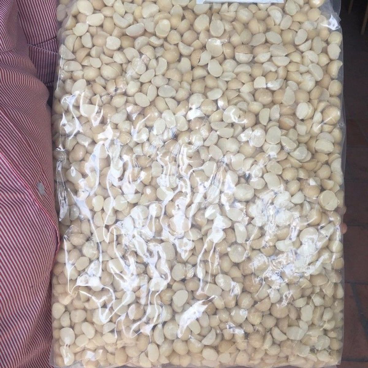 – Khi vỏ quả mắc ca khô sẽ tự nứt và rụng xuống đất bên trong có chứa hạt. Hạt mắc ca tròn như hạt nhãn, bên trong có màu kem sữa và láng bóng, đường kính hạt từ 2-3 cm. Hạt có vị thơm mềm như bơ và tan mịn trên đầu lưỡi khi cho vào miệng, có được điều này là do trong mắc ca có chứa hàm lượng chất béo rất cao.