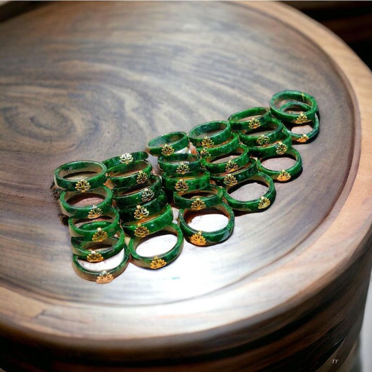 Tên sản phẩm: nhẫn ngọc cẩm thạch sơn thủy bọc sen vàng tây 10 kara - thắng giang