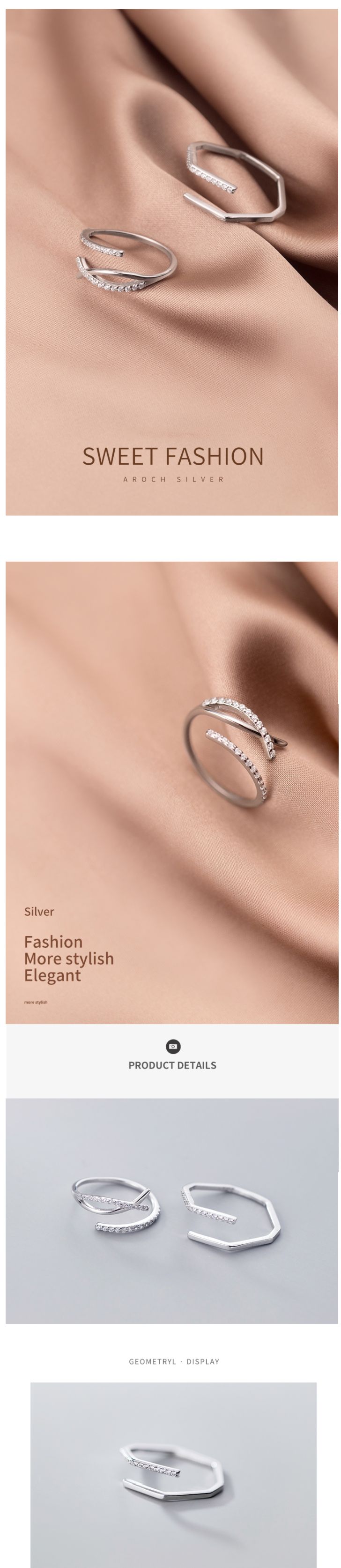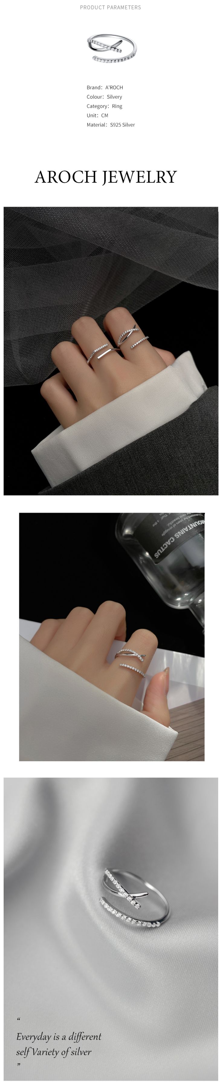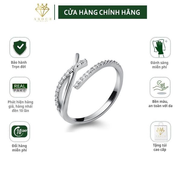 Nhẫn nữ hở freesize,hợp với mọi kích cỡ ngón tay,bạc Ý s925 hình chữ X mở J6921- AROCH Jewelry giá sỉ - giá bán buôn