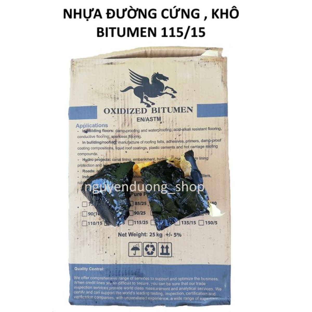 NHỰA ĐƯỜNG CỨNG , KHÔ CHỐNG THẤM - Xuất xứ : Iran hoặc Nga - Cấu tạo : Là sản phẩm của quá trình chưng cất dầu mỏ - Quy cách : Trọng lượng 1 Kg - 2 Kg - 5Kg - Trạng thái : Dạng cứng đóng trong hộp giấy hoặc bao tải - Điểm chảy mềm : 75-150 - Màu sắc : Đen - Công dụng : Dùng trong việc chống thấm, chèn khe co dãn cho mặt Bê tông, quét đường ống dẫn dầu , chống thấm , ốp cầu thang gỗ , sàn gỗ , chống mối mọt , chống sét rỉ , đổ linh kiện điện tử….