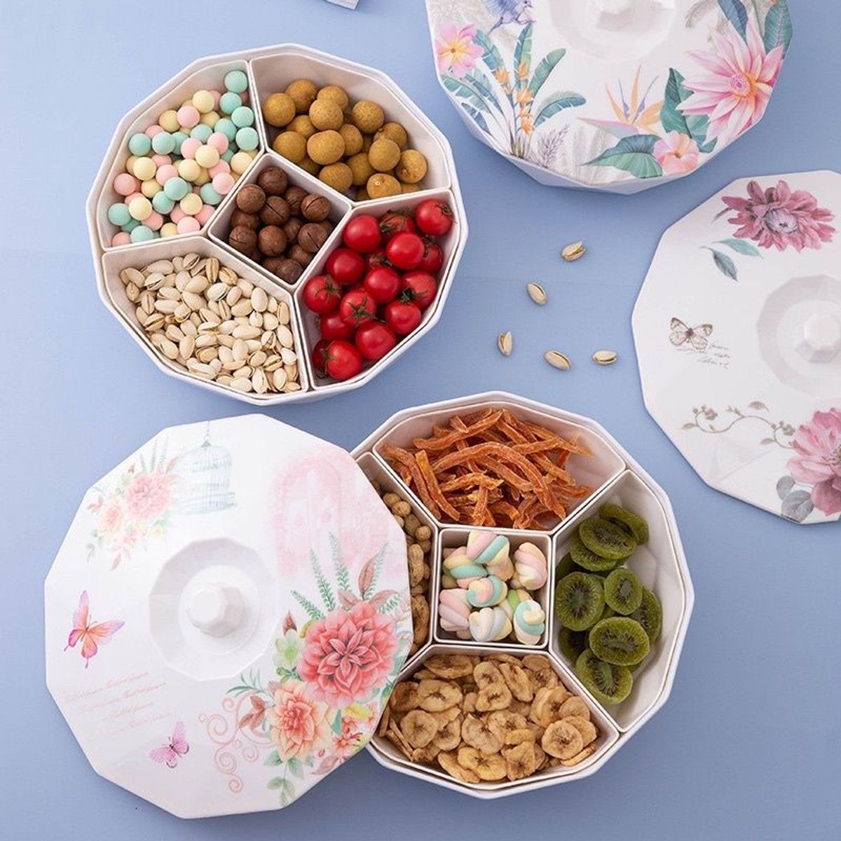 + Đặc biệt vào những ngày Tết trên bàn lại càng không thể thiếu 1 khay bánh mứt nữa ạ, nhưng riêng về khay đựng này thay vì hết những ngày Tết chúng ta cất vào thì mẫu này chúng ta còn có thể sử dụng được để đựng trái cây ăn hay lấy riêng từng hủ đựng đựng vật dụng hay tiêu muối trong bếp ạ.