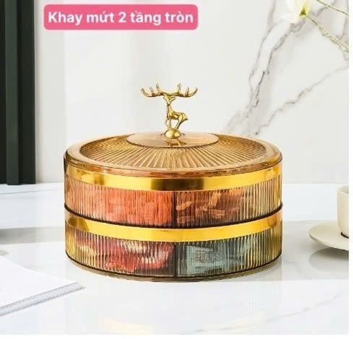 + Đặc biệt vào những ngày Tết trên bàn lại càng không thể thiếu 1 khay bánh mứt nữa ạ, nhưng riêng về khay đựng này thay vì hết những ngày Tết chúng ta cất vào thì mẫu này chúng ta còn có thể sử dụng được để đựng trái cây ăn hay lấy riêng từng hủ đựng đựng vật dụng hay tiêu muối trong bếp ạ.
