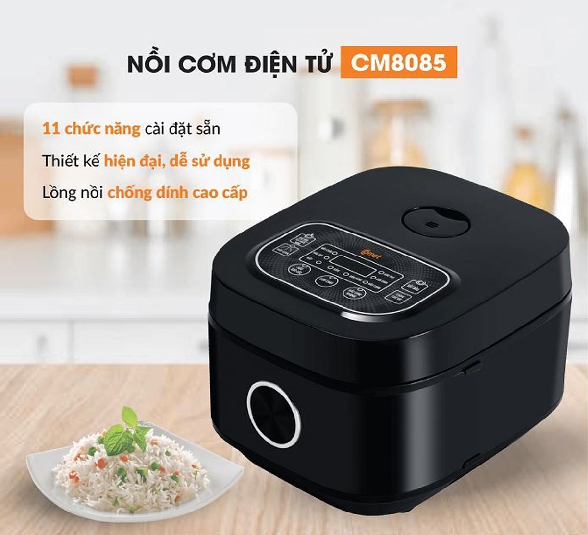 Nồi cơm điện tử CM8085 - Dung tích 1.2L là một thiết bị điện gia dụng giúp hỗ trợ người dùng có bữa cơm ngon mà lại nhanh chóng, tiện lợi. Đây là một trong những giải pháp thông minh giúp người dùng vừa có thể tiết kiệm thời gian nấu nướng mà vẫn giữ được chất dinh dưỡng của sản phẩm.
