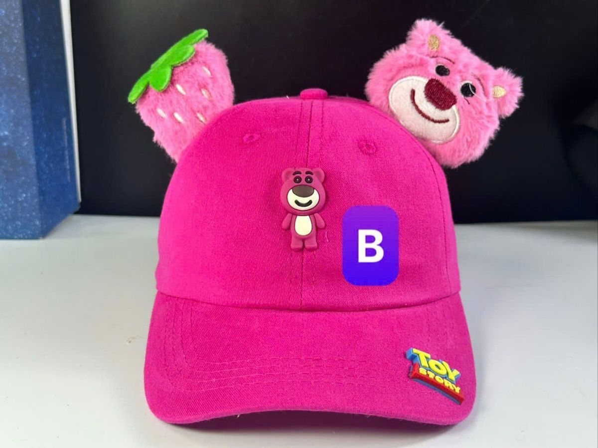 Nón kết trẻ em đính gấu dâu đứng CQ giá sỉ - giá bán buôn