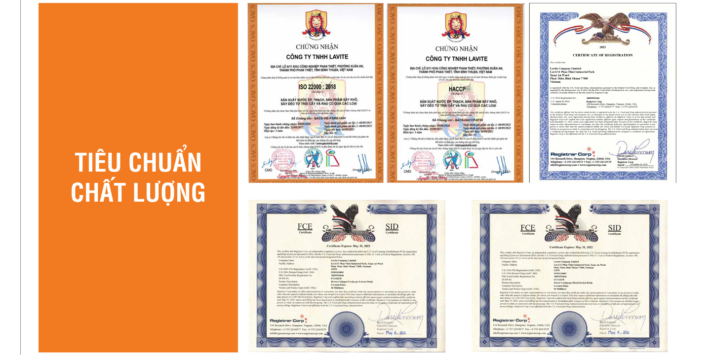 GIẤY CHỨNG NHẬN CỦA NƯỚC ĐÔNG TRÙNG HẠ THẢO HECTOR COLLAGEN