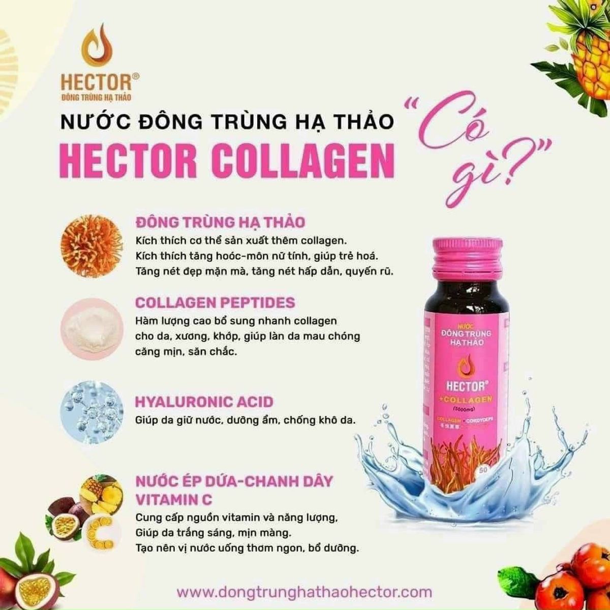 Nước Đông Trùng Hạ Thảo Hector Collagen là một sản phẩm chăm sóc sức khỏe và làm đẹp cao cấp, được làm từ thành phần đông trùng hạ thảo và collagen tự nhiên. Đông trùng hạ thảo là một loại nấm quý hiếm, được biết đến với khả năng giúp tăng cường hệ miễn dịch, hỗ trợ chức năng gan và thận, cải thiện tình trạng mệt mỏi và stress. Sản phẩm Nước Đông Trùng Hạ Thảo Hector Collagen còn chứa collagen tự nhiên, giúp cung cấp chất dinh dưỡng cho da, tóc và móng tay, giúp cải thiện độ đàn hồi và giảm nếp nhăn. Sản phẩm phù hợp cho mọi đối tượng sử dụng, đặc biệt là những người muốn cải thiện sức khỏe và làm đẹp từ bên trong. Sản phẩm có thể dùng được cho cả nam và nữ.