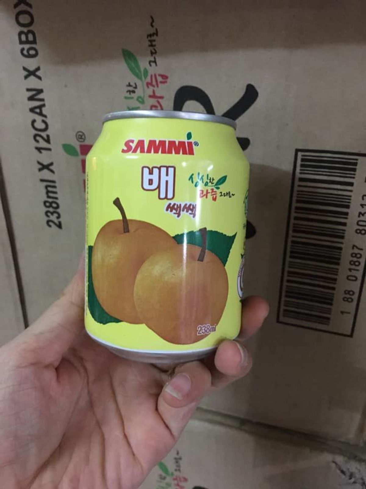 Nước ép lê nguyên chất SAMMI Dung tích : 238ml lon Quy cách : 12 lon hộp Date : 9/2020 Xuất xứ : Korea Hàn Quốc Giá : 120k/ hộp 12 lon