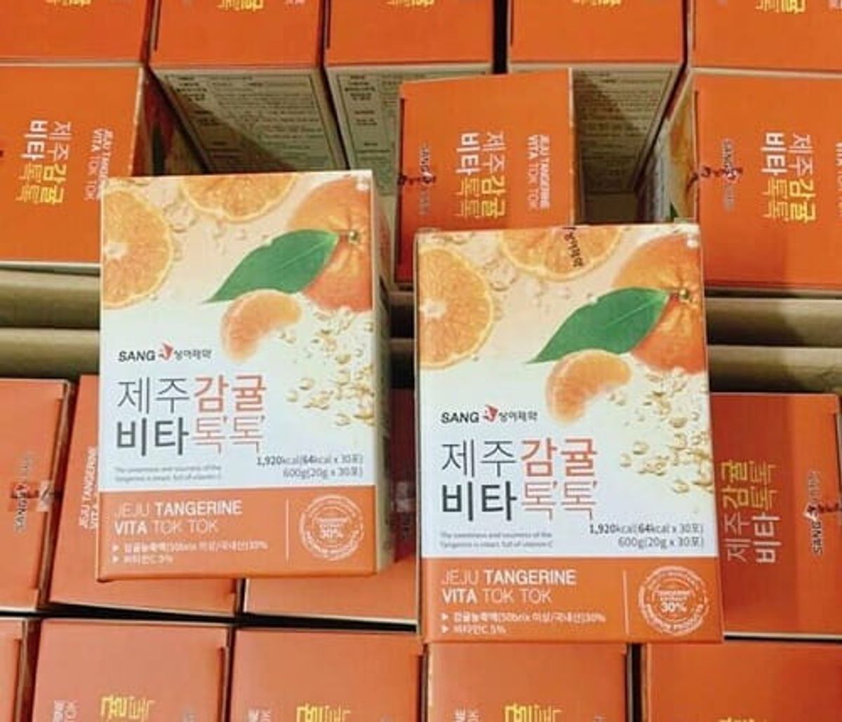 NƯỚC ÉP QUÝT SANGA 100% THIÊN NHIÊN: ● Nước ép quýt Jeju Tangerine Vita Tok Tok lấy nguồn nguyên liệu trực tiếp từ quýt đảo Jeju - Một trong những đặc sản nổi tiếng của Hàn Quốc. Quýt đảo Jeju ngọt tự nhiên, hương vị ngon được rất nhiều người yêu thích. ● Nước ép quýt Sanga Jeju không chứa thêm chất tạo màu, tạo mùi, hương vị,... 1-2 ly nước ép quýt hàng ngày vừa thanh nhiệt, giải khát, vừa tạo cảm giác sảng khoái và tăng cường sức khỏe. CÔNG DỤNG TUYỆT VỜI: ● Quýt chứa rất nhiều vitamin C, A, khoáng chất và chất chống oxy hóa mạnh mẽ. Ngoài những lợi ích cho sức khỏe, hệ miễn dịch thì nó còn giúp làm đẹp da, đẹp dáng mà phụ nữ không nên bỏ qua. ● Tinh chất quýt đảo Jeju giúp giảm tích lũy mỡ thừa, thúc đẩy đào thải mỡ. Ngoài ra, tạo cảm giác no, không thèm ăn, để hỗ trợ giảm cân hiệu quả. Hàng có sẵn sỉ ib (Nhi)