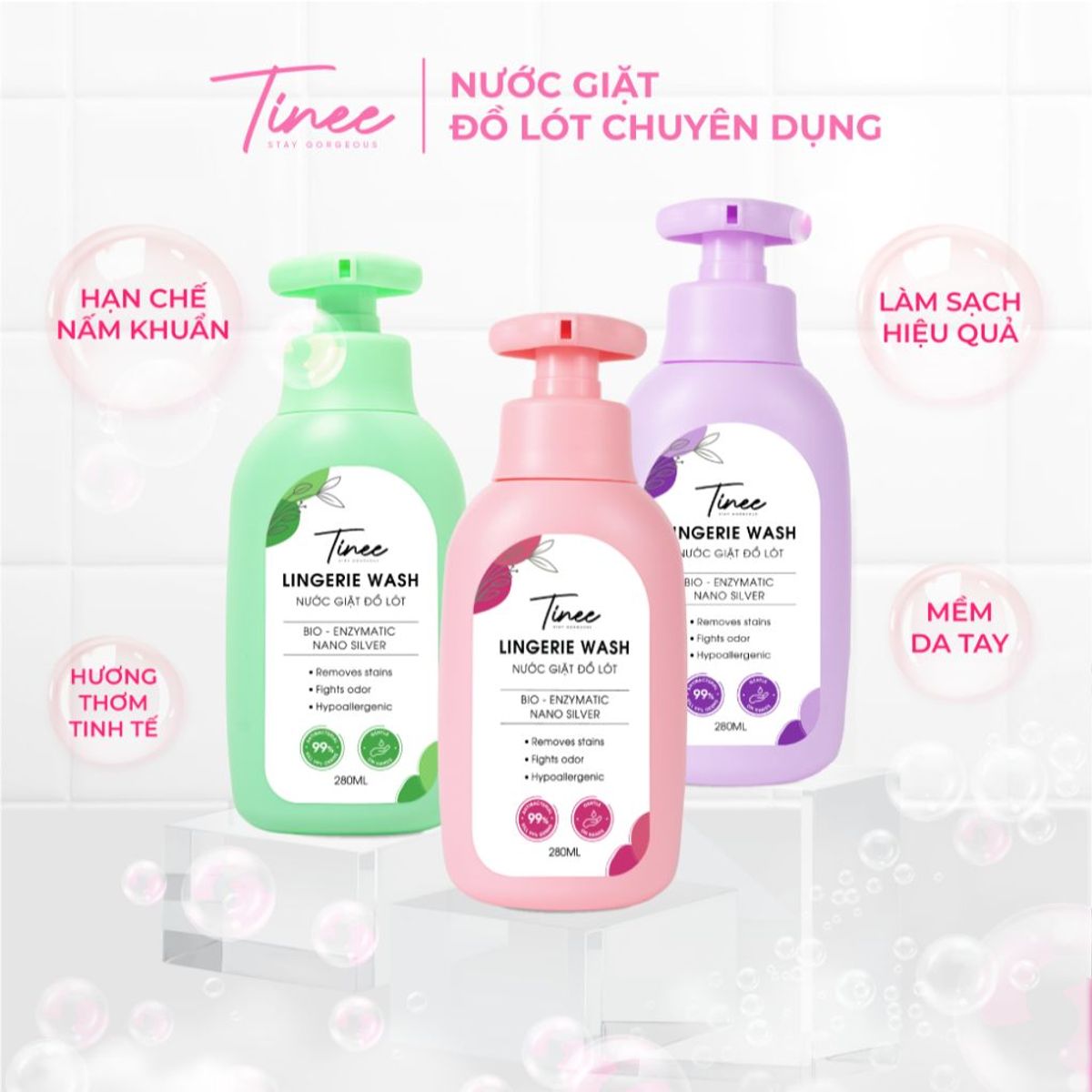 Nước giặt đồ lót Tinee Lingerie Wash – Làm sạch kháng khuẩn, khử mùi, mềm da tay – Công nghệ enzyme & nano bạc 280ml