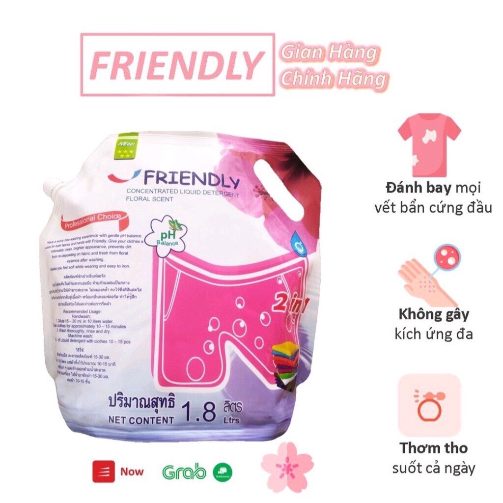 – Nước giặt Friendly Thái Lan được sản xuất trên dây chuyền công nghệ tiên tiến, chế tạo theo công thức đặc biệt, Friendly đánh bay mọi vết bẩn cứng đầu trên quần áo, cùng với Polyacrylate giúp ngăn vết bẩn quay trở lại và đặt biệt không gây kích ứng da - phù hợp cho cả quần áo em bé.