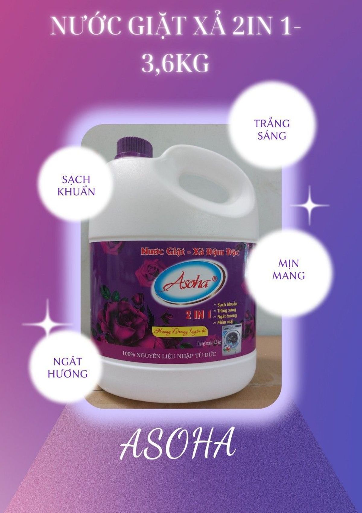 Nước Giặt Xả Asoha 3,6l 1 Thùng 4 can loại 3,6l. giá sỉ/bán buôn