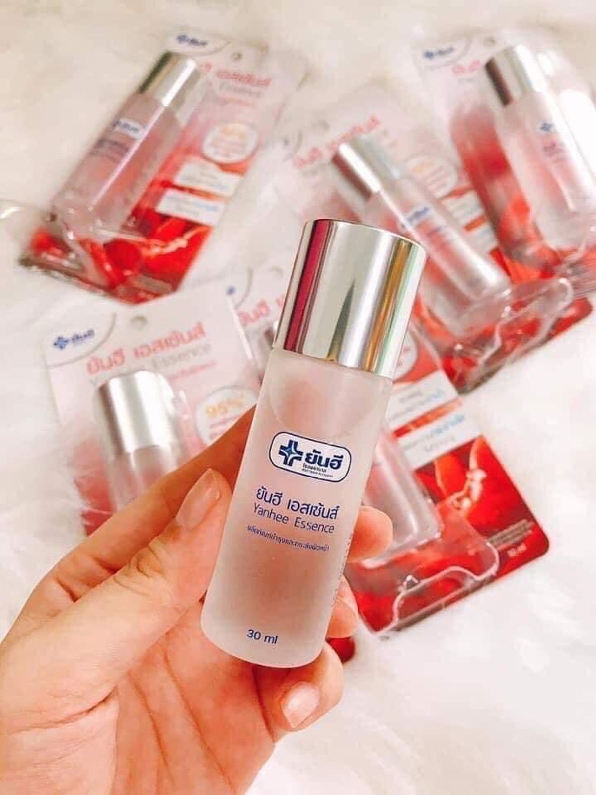 Nước hoa hồng Yanhee Essence Thái Lan 30ml Là bước đầu tiên trong tất cả các bước dưỡng da, trước Toner luôn. YANHEE ESSENCE được chiết xuất từ lô hội, hoa hồng cùng tinh chất ốc sên giúp cung cấp độ ẩm cho da, giảm nếp nhăn, chống lão hóa, mờ các vết thâm mụn, nám, tàn nhang, sẹo, giúp da săn chắc. Giúp cân bằng độ PH cho da, giúp da căng mịn hơn và trẻ trung hơn Tăng tính đàn hồi cho da, giảm tiết nhờn trên da mặt và se khít lỗ chân lông. Da sẽ trở nên mịn hơn, mềm mại hơn Sử dụng: Nhỏ từ 3-4 giọt tinh chất nước hoa hồng lên tay, sau đó thoa đều nhẹ nhàng lên mặt vào mỗi sáng và tối - nên sử dụng thường xuyên để có kết quả Cam kết chính hãng từ Bệnh viện Yanhee