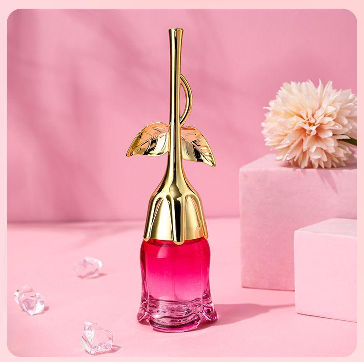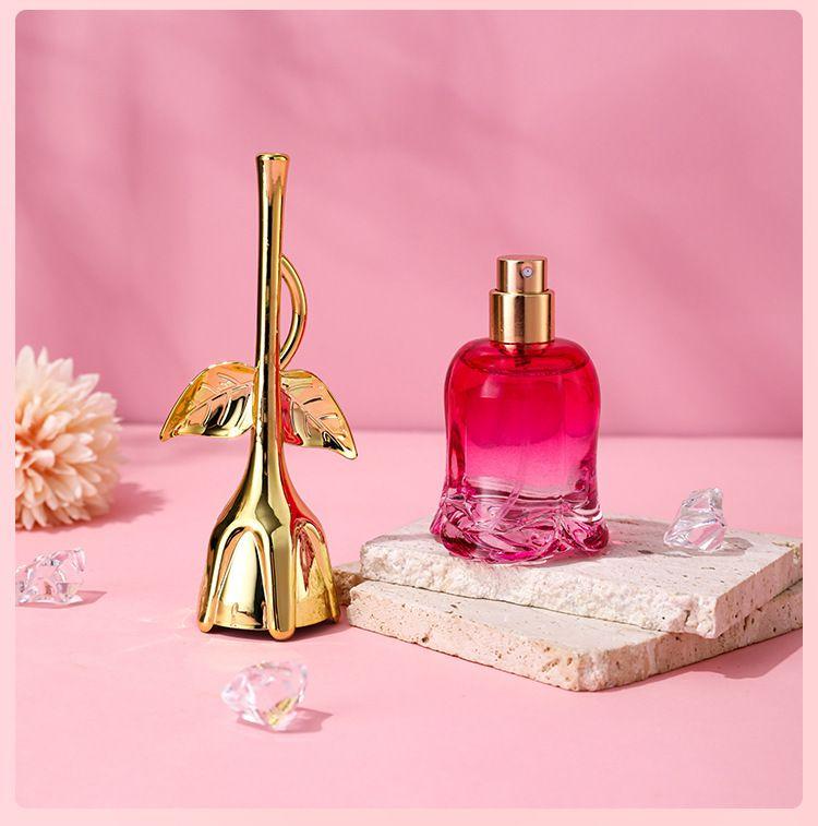 ✅️ Thiết kế ấn tượng với hình dáng bên ngoài là cây hoa hồng. Có thân và lá được làm từ nhôm mạ màu vàng lấp lánh - đây cũng là nắp của chai nước hoa. Phần hoa màu hồng làm bằng thủy tinh trong suốt dùng để đựng nước hoa