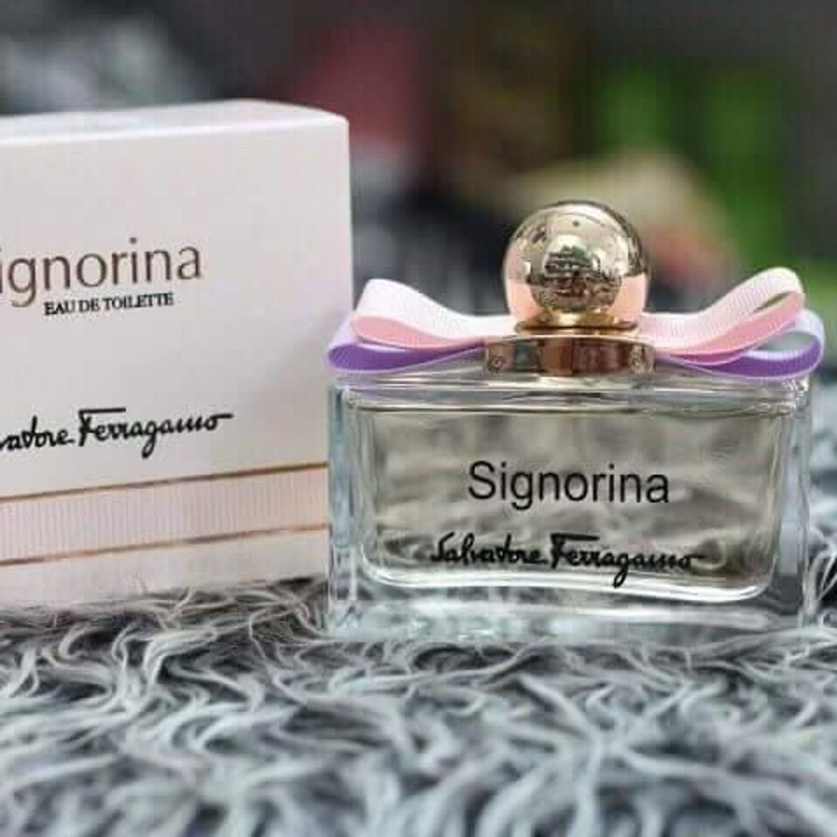 Signorina trong tiếng Ý mang nghĩa là người phụ nữ trẻ. Nước hoa Signorina là sự tôn vinh những cô nàng cá tính với mùi hương tươi mát, sành điệu và phảng phất nét táo bạo. Đây là mẫu nước hoa mới của Salvatore Ferragamo, hướng đến những cô gái trẻ với sự kết hợp của tinh dầu hoa nhài, nho đen, mẫu đơn, hoắc hương và hoa hồng mang phong cách Italy.