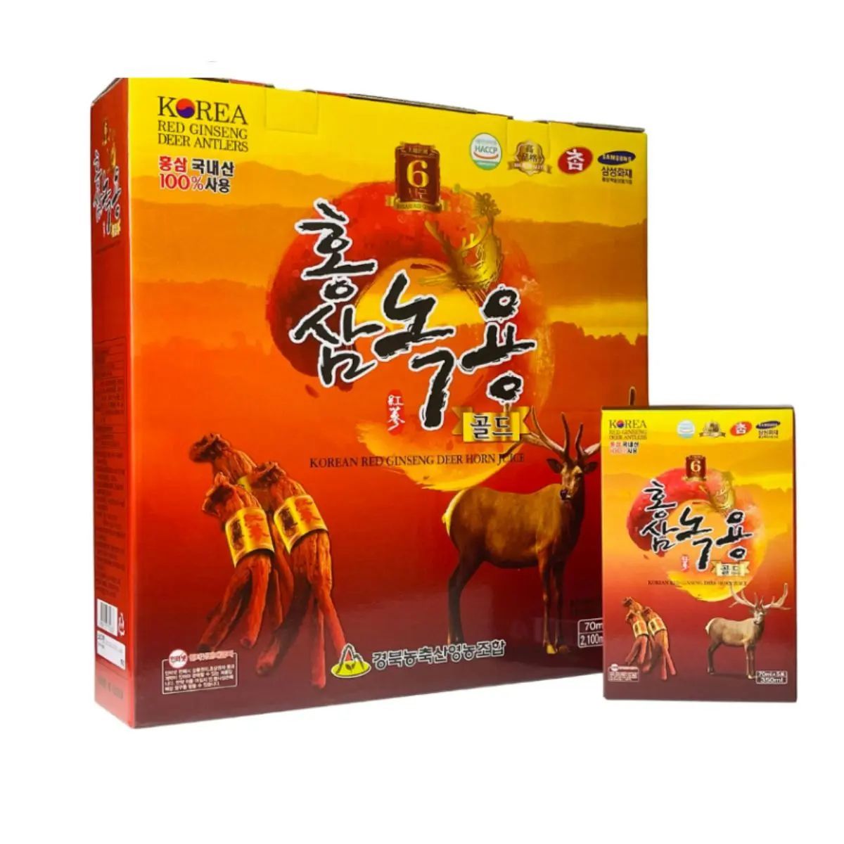 Nước tinh khiết, bạch chỉ, rễ dong riềng, đan bì (sản xuất Hàn Quốc), cam thảo, chiết xuất hòng sâm (sản xuất Hàn Quốc, hàm lượng chất rắn 2%) 0.46%, chiết xuất nhung hươu (sản xuất Hàn Quốc, hàm lượng chất rắn 1%) 0.6% cheongung, nhân sâm, xương cựa, hoa mẫu đơn, oligosaccharide, hương liệu tổng hợp, (Hương thảo mộc G), nhân sâm, quế.
