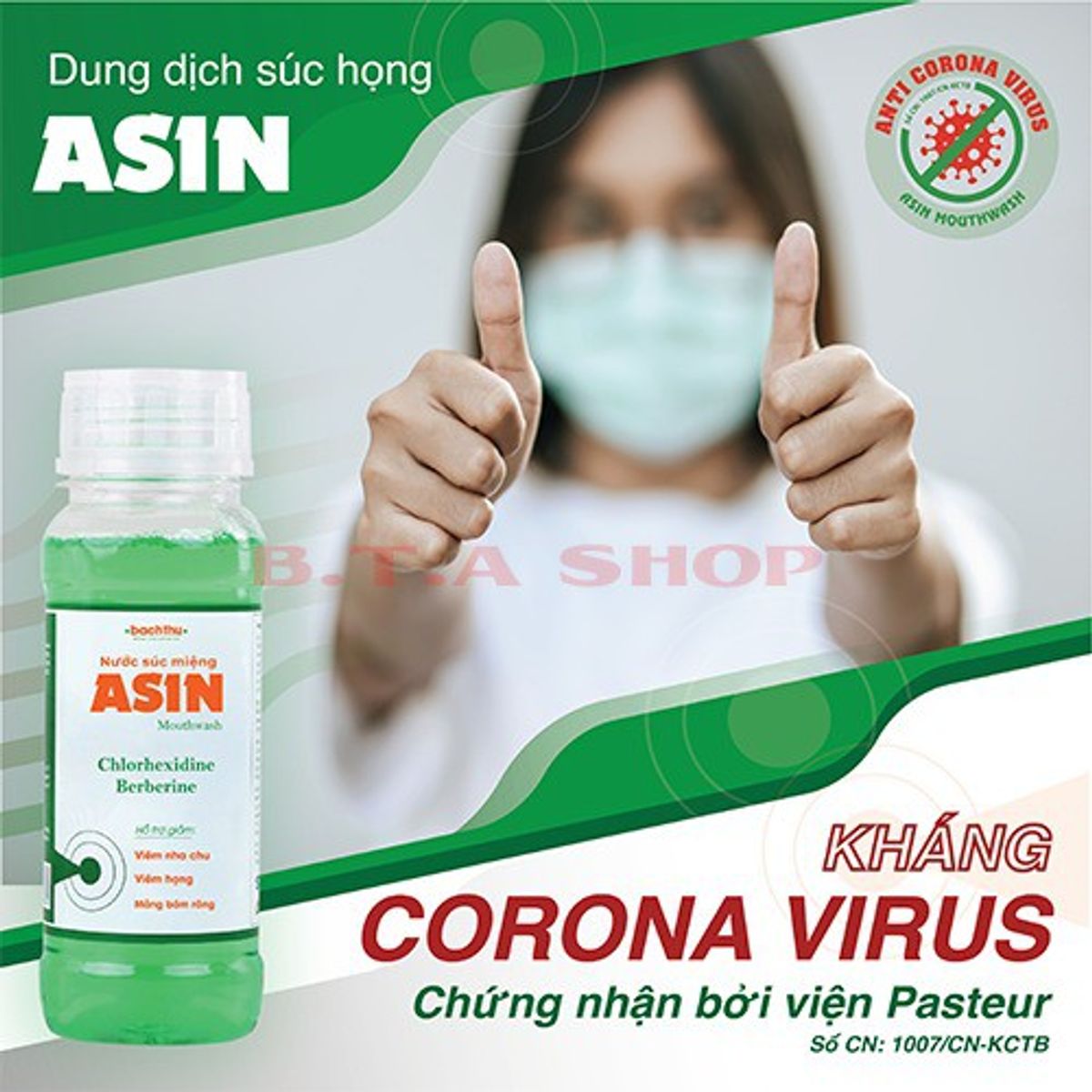 - Nước súc miệng ASIN chứa dược chất thiên nhiên Berberine Chloride tinh chế bằng