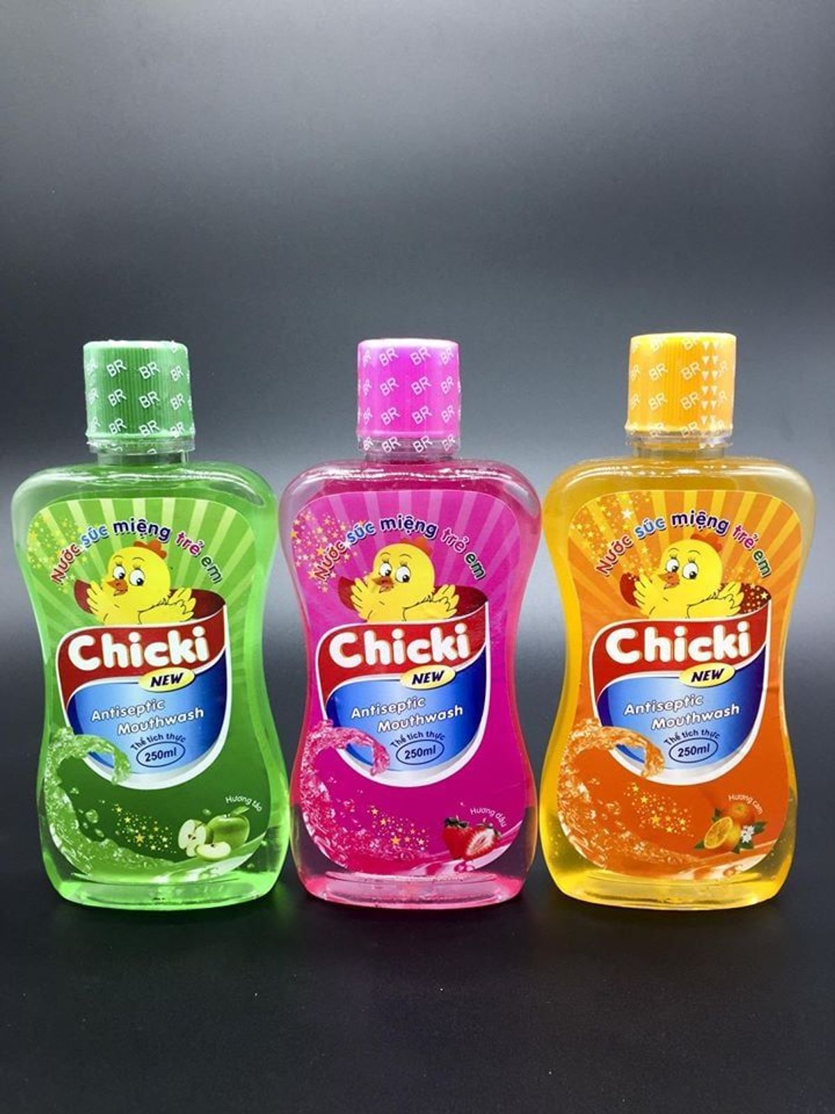 - Với mục đích chính là bảo vệ răng miệng, giúp ngừa sâu răng cho các bé trên 3 tuổi, sản phẩm nước súc miệng trẻ em CHICKI NEW đã ra đời với ưu điểm nổi bật là nước súc miệng không cay dành riêng cho trẻ em