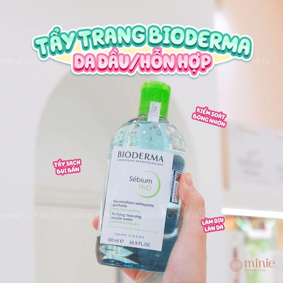- Tẩy trang Bioderma - Sebium H2O Micelle Solution - nắp hồng: Da nhạy cảm