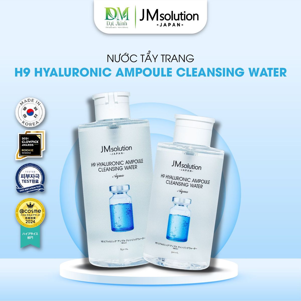 Nước Tẩy Trang Dịu Nhẹ JMSOLUTION Japan H9 Hyaluronic Ampoule Cleansing Water Aqua 500ML Phù Hợp Mọi Loại Da
