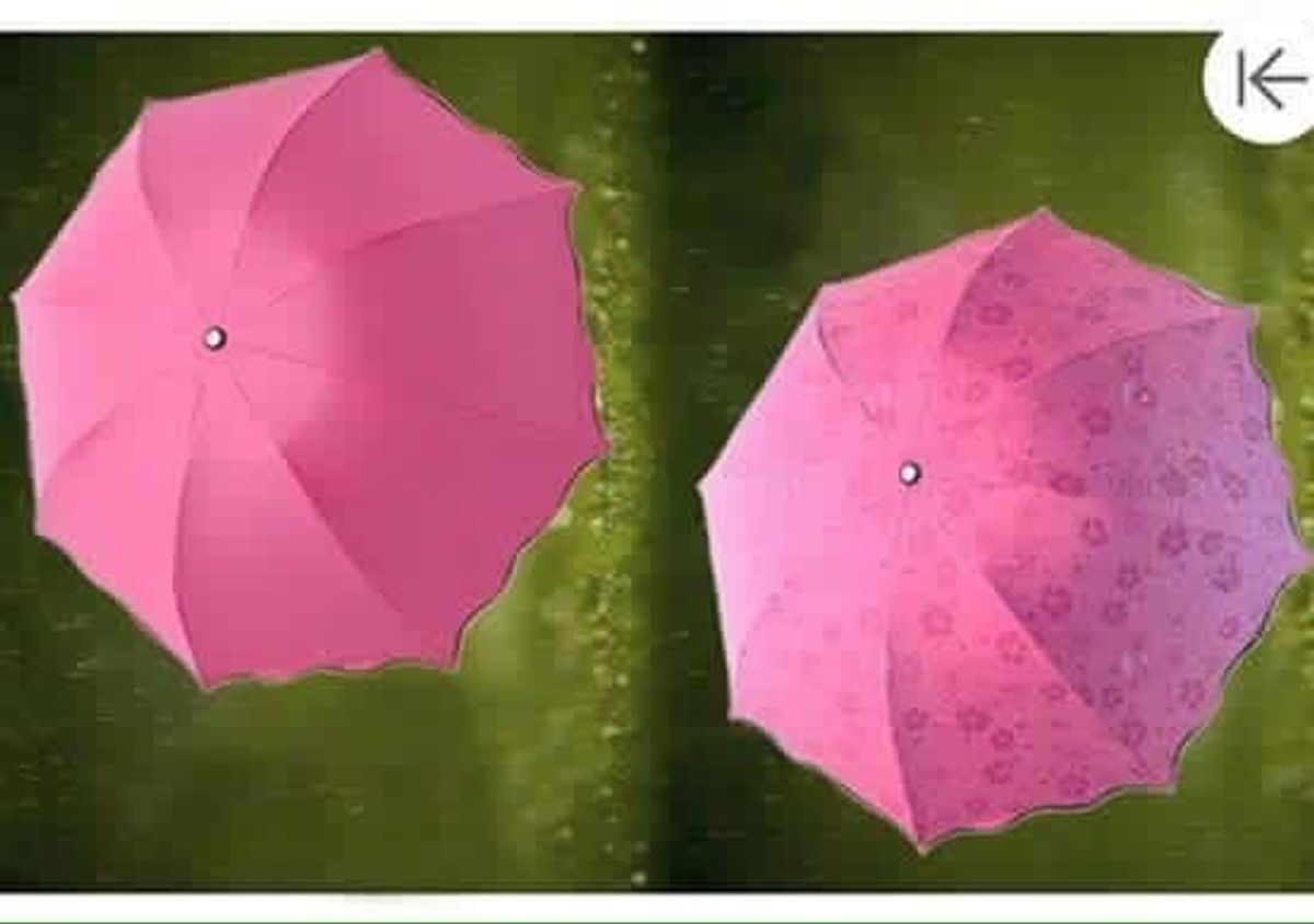 Chiếc ô gấp thiết kế đặc biệt: Khi gặp nước sẽ hiện hình các bông hoa xinh xinh trên ô.