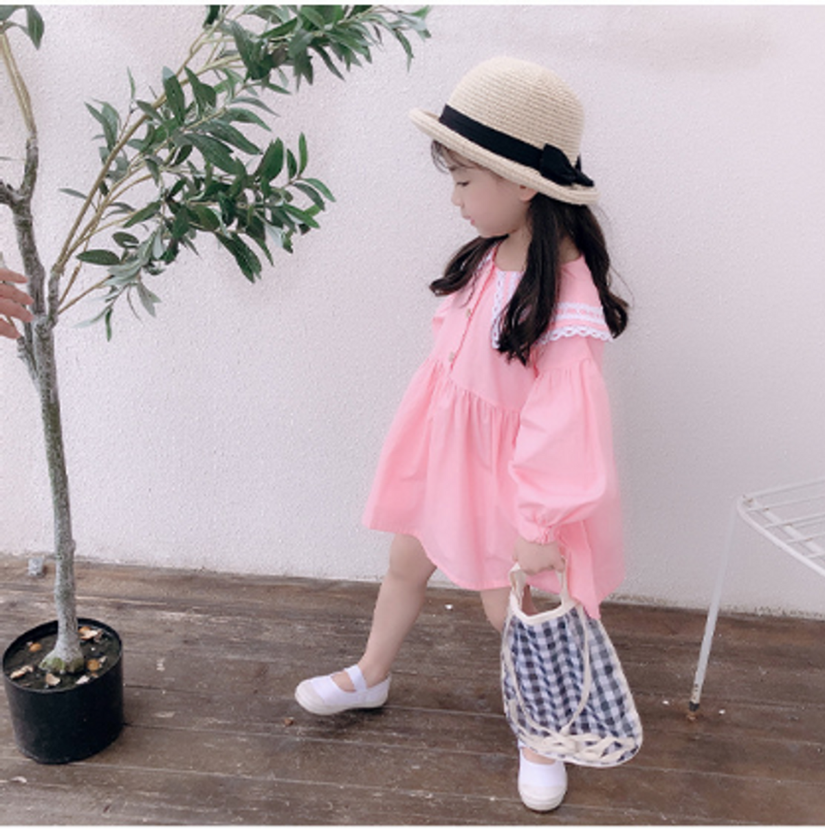 Đầm đũi bé gái phối ren, cổ sen cách điệu