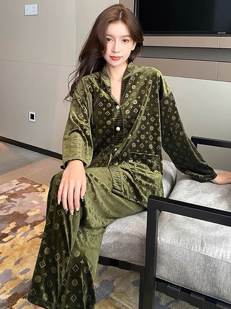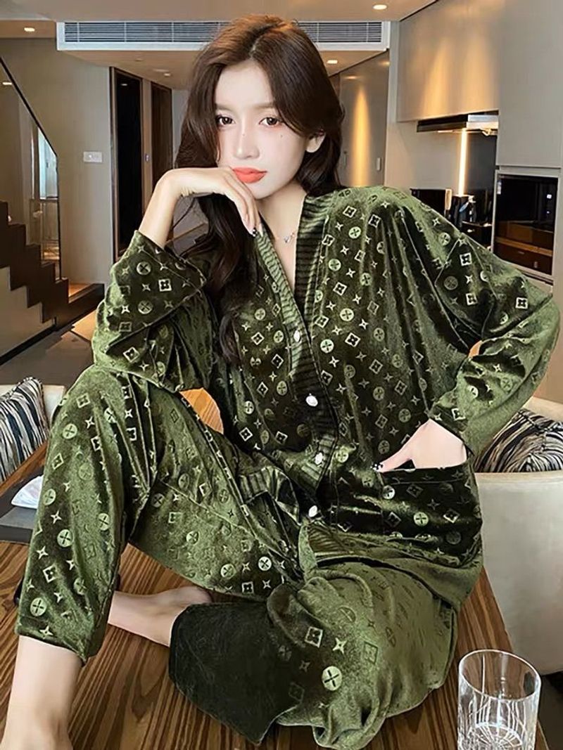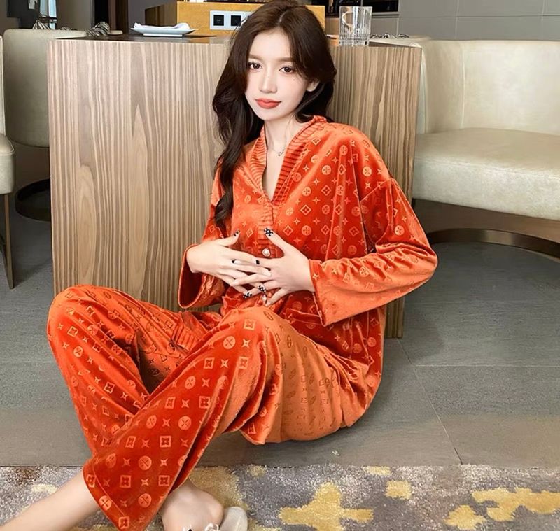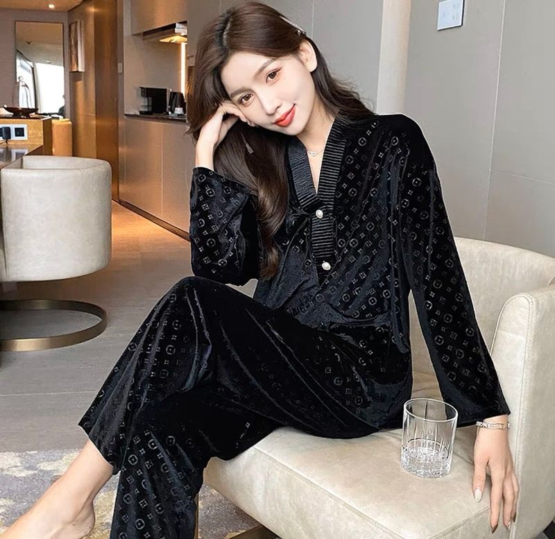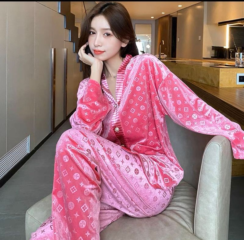 Bộ đồ ngủ nữ cao cấp nhung vàng xuân thu dập nổi , nhung kim cương sang trọng