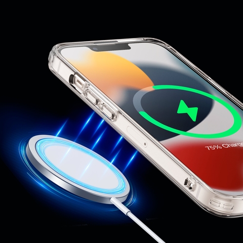 Khoá từ tính ở lưng ốp giúp kết nối sạc không dây dễ dàng và nhanh chóng mọi lúc mọi nơi, ốp hoàn toàn tương thích với MagSafe.
