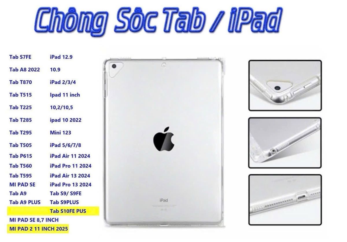 Ốp Lưng Chống Sốc Dẻo Trong Suốt Cho iPad – Samsung Tab – Xiaomi Pad | TPU Mềm, Bảo Vệ 4 Góc, Chống Vỡ – Chống Trầy giá sỉ - giá bán buôn