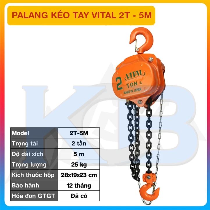 Pa lăng xích kéo tay VITAL 2T-5M là một trong những thiết bị không thể thiếu trong ngành xây dựng, cơ khí. Pa lăng giúp cho người vận hành dễ dàng nâng hạ các vật nặng lên xuống 1 cách dễ dàng, đảm bảo độ an toàn cao.