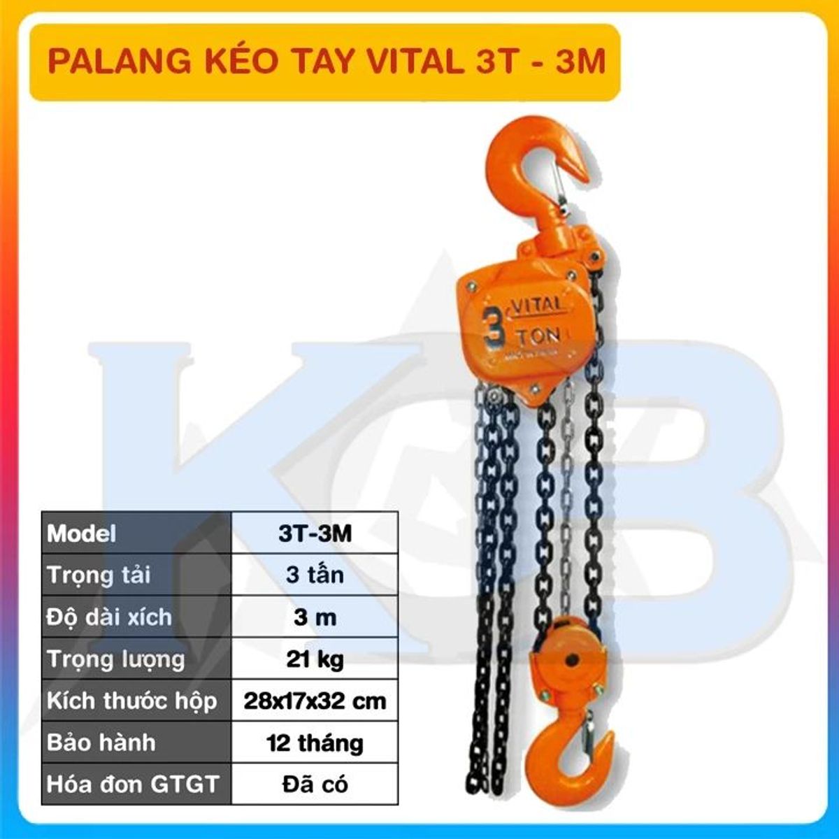 Pa lăng xích kéo tay VITAL 3T-3M là một trong những thiết bị không thể thiếu trong ngành xây dựng, cơ khí. Pa lăng giúp cho người vận hành dễ dàng nâng hạ các vật nặng lên xuống 1 cách dễ dàng, đảm bảo độ an toàn cao.