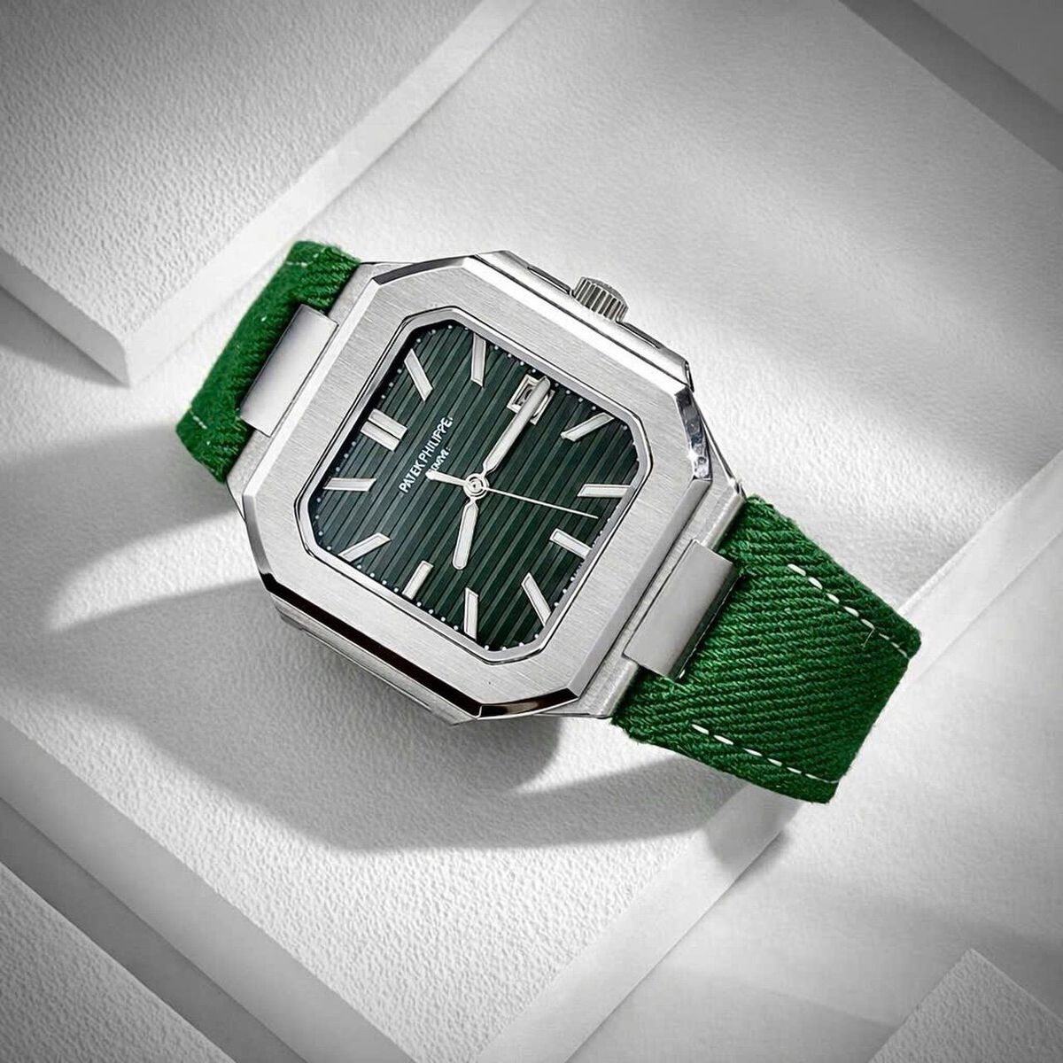 🔺Patek Philippe Cubitus thuộc dòng đồng hồ thể thao thanh lịch, Cubitus còn được gọi là phiên bản hình vuông của Nautilus. Trên mặt số đồng hồ có cửa sổ lịch ngày được đặt ở vị trí 3