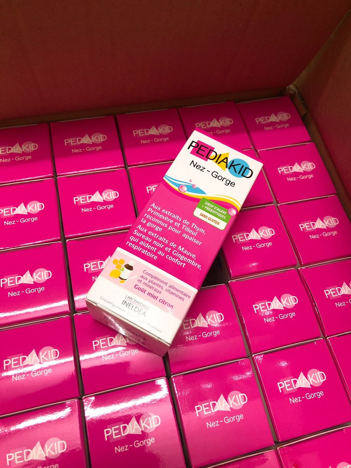 PediaKid Nez-Gorge được gọi với cái tên quen thuộc là PediaKid mũi họng, là sản phẩm của hãng Inelda nổi tiếng của Pháp. Được chiết xuất 100% từ thảo dược tự nhiên, dưới dạng siro thơm ngon, PediaKid Nez-Gorge đặc biệt phù hợp với trẻ nhỏ, hỗ trợ điều trị các triệu chứng thường gặp như cảm cúm, viêm mũi, viêm phế quản, viêm phổi và giảm ho.