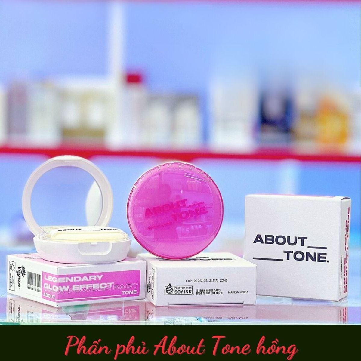 Phấn phủ sáng mịn da About Tone Glow Powder Pact (Hồng): Có ánh nhũ, tạo hiệu ứng căng bóng, hồng hào