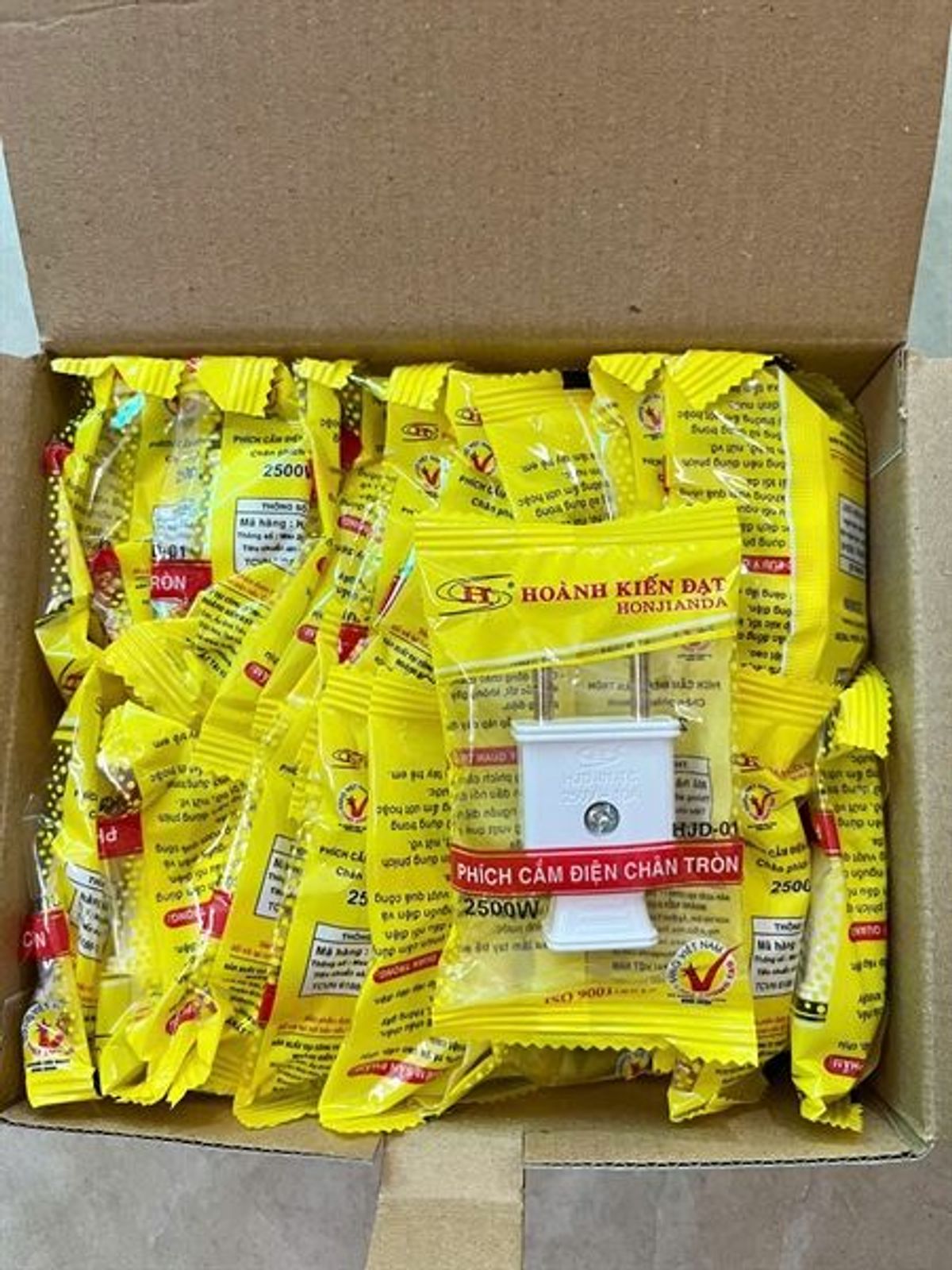 Phích cắm chân tròn HJD-01, công suất 2.500w thau đàn hồi, nhựa PC chịu nhiệt, chống vỡ (Honjianda)
